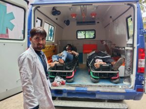 जब इनकी बाइक थरियांव थाना क्षेत्र के नेशनल हाईवे 2 पर हसवा पुलिस चौकी के समीप पहुंची। तभी अज्ञात वाहन इनकी बाइक को टक्कर मारते हुए निकाल गया। जिससे बाइक रोड पर गिर गई और दोनो गंभीर रूप से घायल हो गए। हादसे की जानकारी कटोघन हाईवे पेट्रोलिंग की 1033 एंबुलेंस को हुई तो तुरंत मौके पर पहुंचे एंबुलेंस के ईएमटी जगदीश और पायलट राकेश विश्वकर्मा ने घायलों को इलाज के लिए जिला अस्पताल पहुंचाया। जहां ड्यूटी पर मौजूद डॉक्टर भर्ती कर उनका इलाज कर रहे हैं।