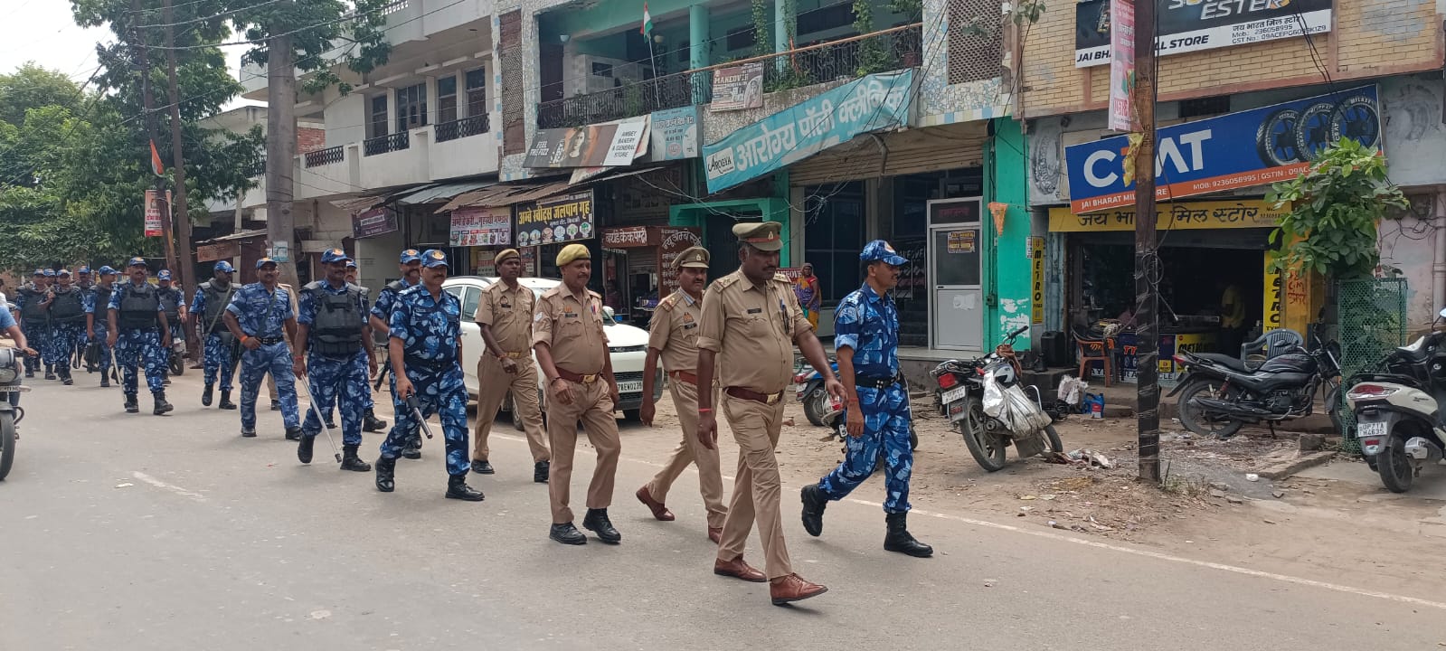 उत्तर प्रदेश फतेहपुर जिले की बिंदकी कोतवाली क्षेत्र में लोगों में आत्मविश्वास जगाने तथा भय मुक्त होने का संदेश देने के लिए नगर के मुख्य मार्ग में आरएएफ द्वारा फ्लैग मार्च किया गया। फ्लैग मार्च में स्थानीय पुलिस भी मौजूद रही। जानकारी के अनुसार नगर में शुक्रवार को आरएएफ 101 बटालियन की डी कंपनी की टीम द्वारा फ्लैग मार्च किया गया। यह फ्लैग मार्च बिंदकी कोतवाली परिसर से प्रारंभ हुआ। मुगल रोड होते हुए फ्लैग मार्च ललौली चौराहे पहुंचा। इसके बाद फ्लैग मार्च कस्बे के प्रमुख मार्गो में घूमा। फ्लैग मार्च के माध्यम से लोगों में आत्मविश्वास जगाया गया। इस मामले में बटालियन के सहायक कमांडेंट विजय मेहंदी ने बताया कि लोगों में आत्मविश्वास जगाने के लिए फ्लैग मार्च किया गया है यह फ्लैग मार्च जनपद के कई स्थानों पर किया जा रहा है। इस मौके में बटालियन के निरीक्षक डीपी सरोज निरीक्षक रामकुमार के अलावा बिंदकी कोतवाली के उप निरीक्षक यश करण सिंह आदि मौजूदरहे
