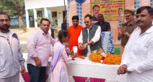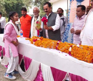 उत्तर प्रदेश फतेहपुर.जिले में बाल दिवस के शुभ अवसर पर वर्ष 2022 यूपी बोर्ड मेधावी छात्र-छात्राओं का सम्मान समारोह व विज्ञान प्रदर्शनी कला प्रदर्शनी एवं खेलकूद प्रतियोगिता का शुभारंभ मुख्य अतिथि मा0 संतोष तिवारी वरिष्ठ समाजसेवी ने किया। मुख्य अतिथि को विद्यालय प्रबंधक ओमप्रकाश यादव एवं समस्त शिक्षकों ने 21 किलो की पुष्पों की माला पहनाकर स्वागत किया। साथ ही विद्यालय प्रधानाचार्य अवधेश प्रताप सिंह ने भगवान राधा कृष्ण का प्रतीक चिन्ह मुख्य अतिथि को भेंट किया। एवं मुलायम सिंह यादव व धर्मवीर लोधी प्रधानाचार्य बलराम ने पुष्पों का गुच्छ मुख्य अतिथि संतोष तिवारी को देकर सम्मान बढ़ाया।