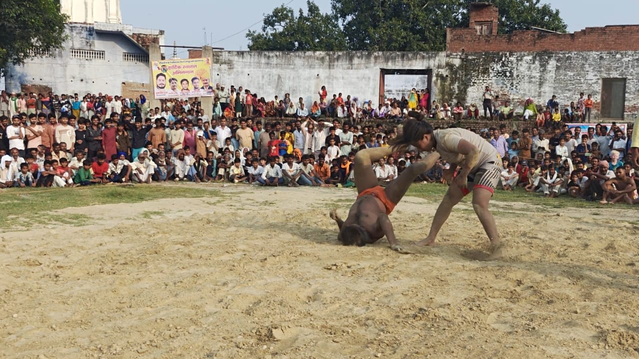 उत्तर प्रदेश फतेहपुर जिले की बिंदकी कोतवाली क्षेत्र में मां काली जी के दरबार में हुए ऐतिहासिक दंगल में कानपुर के नामी पहलवान रवि ने भिंड के पहलवान आशीष को पराजित कर इनाम में चांदी का गदा जीता। अन्य पहलवानों ने भी ताकत और दांव पेंच का सुंदर प्रदर्शन कर खूब तालियां बटोरी। सोमवार की शाम को नगर के मोहल्ला हजरतपुर ठठराही में मां काली जी मंदिर परिसर में आयोजित ऐतिहासिक और विशाल दंगल में देश और प्रदेश के नामी पहलवानों ने अपने ताकत और दांव पेंच का सुंदर प्रदर्शन किया और खूब तालियां बटोरी सर्वोच्च नाम चांदी के गदा के लिए कानपुर के पहलवान रवि ने भिंड के पहलवान आशीष को पराजित किया और चांदी का गदा इनाम में पाया। इसके अलावा हसवा बिललंदा की महिला पहलवान पूनम ने भिंड के पहलवान राजा को पराजित कर दिया। दंगल में गोलू पहलवान इटावा तथा कानपुर के पहलवान शोभित तथा जिगनी के पहलवान जुनैद तथा शाहिद ने भी अपने ताकत का प्रदर्शन किया और खूब तालियां बटोरी इस मौके पर भारतीय जनता पार्टी युवा मोर्चा के जिला अध्यक्ष मधुराज विश्वकर्मा, नवयुवक महिला कमेटी के अध्यक्ष अनूप मिश्रा, नगर पालिका के पूर्व अध्यक्ष मुन्नालाल सोनकर भाजपा नगर अध्यक्ष बउआ ठाकुर राजू द्विवेदी विभोर द्विवेदी मोना ओमर विष्णु द्विवेदी आनंद कसेरा निशांत विश्वकर्मा भारत द्विवेदी पीयूष मिश्रा पीयूष तिवारी लकी पांडे सहित भारी संख्या में लोग मौजूद रहे।