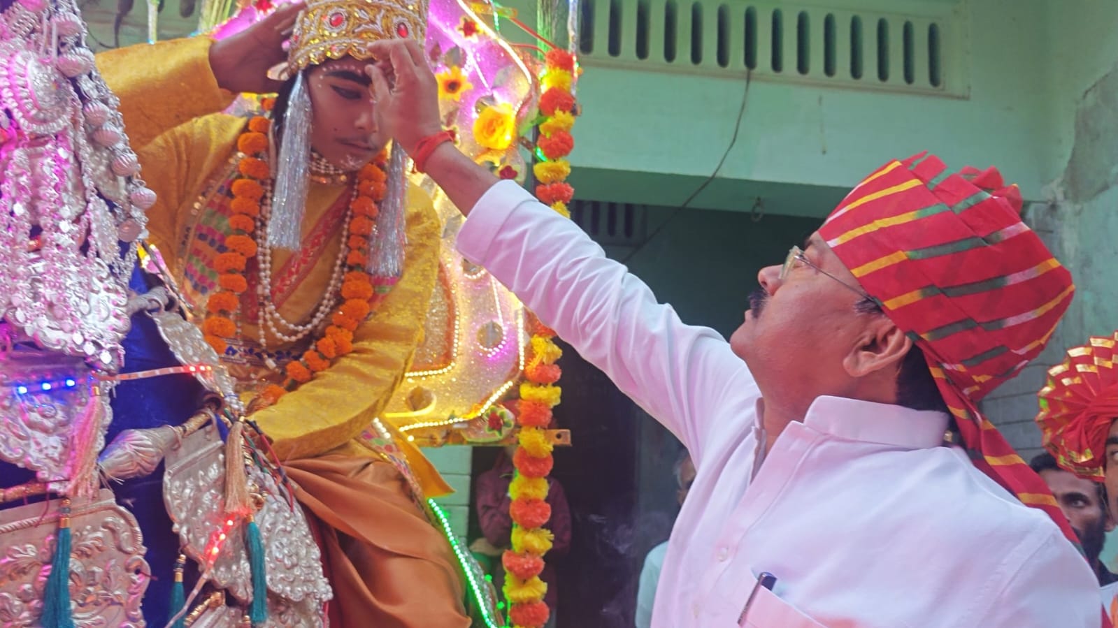 उत्तर प्रदेश फतेहपुर जिले के बिंदकी कस्बे में भगवान श्री राम जी तथा लक्ष्मण जी की पूजा अर्चना कर ऐतिहासिक दशहरा महोत्सव के दूसरे दिन शोभा यात्रा का शुभारंभ किया गया यह शोभायात्रा नगर के प्रमुख मार्ग में घूमि। यात्रा के दौरान जमकर आतिशबाजी हुई विधायक जयकुमार सिंह जैकी भी शोभायात्रा में चल रहे थे। नगर के ऐतिहासिक दशहरा महोत्सव का शुभारंभ नगर के कृष्णगंज मोहल्ले में भगवान श्री राम जी तथा लक्ष्मण जी एवं भरत शत्रुघ्न की पूजा अर्चना कर हुआ। विधायक जयकुमार सिंह जैकी तथा श्री रामलीला कमेटी के अध्यक्ष शिवम सिंह परिहार सिंह ने पूजा अर्चना करके शोभायात्रा का शुभारंभ किया यह शोभायात्रा गाजे बाजे के साथ नगर के प्रमुख मार्गो में भूमि इस मौके पर संरक्षक मंडल के नरेंद्र गुप्ता अनिल गुप्ता चार्ली अशोक गुप्ता कुलदीप गोपाल जी गुप्ता रामेश्वर दयाल दयाल पुरुषोत्तम गुप्ता शुभम सिंह परिहार उत्कर्ष गुप्ता चंद्र प्रकाश चंदू रजत अग्रवाल उदय उत्सव छोटू गोविंद गुप्ता वीरेंद्र गुप्ता राजकुमार गुप्ता ठेकेदार विनय तिवारी धीरेंद्र सिंह धीरू राम जी त्रिवेदी सौरभ बाजपेई के अलावा संदीप गुप्ता वेदु गुप्ता सुनीता गुप्ता संगीता तिवारी सौरभ गुप्ता पंकज यादव रामकुमार गुप्ता ठेकेदार ऋषि धारा राजू गुप्ता राहुल सिंह साजन पटेल संदीप पटेल उत्कर्ष सिंह रजत गुप्ता शिवम गुप्ता गुड्डू पंडित हर्ष गुप्ता अध्यक्ष पति राम कुमार साहू अंकित मिश्रा दिनेश लोहिया सोनू गुप्ता राम जी त्रिवेदी रवि गुप्ता अप गौरव राजेश गुप्ता आनंद गुप्ता सुनील गुप्ता दीनानाथ पंकज यादव वीरेंद्र गुप्ता आशीष तिवारी गुलशन गुप्ता अनिल सोनकर सूर्य तथा अंकित गुप्ता आदि मौजूद रहे।