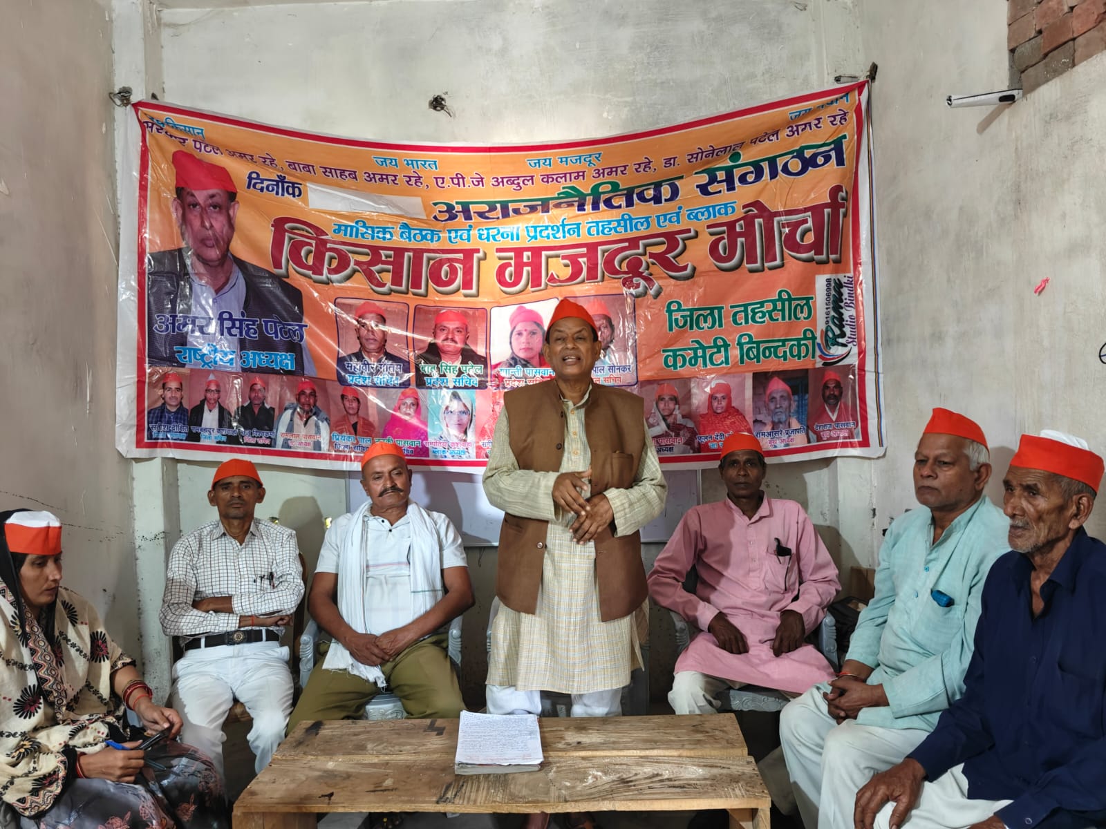 उत्तर प्रदेश फतेहपुर जिले की बिंदकी कस्बे में किसान मजदूर मोर्चा की बैठक में संगठन के राष्ट्रीय अध्यक्ष अमर सिंह पटेल मौजूद रहे। इस मौके पर उन्होंने कहा कि सरकार पूरी तरह से फेल साबित हो रही है सरकार पूरे वर्ष किसानों को पर्याप्त खाद देने में पूरी तरह से फेल साबित हुई है वर्तमान समय मे भी किसानों को डीएपी खाद नहीं मिल पा रही है। जानकारी के अनुसार बिंदकी कस्बे के ललौली चौराहे के समीप सामुदायिक स्वास्थ्य केंद्र के बगल में स्थित किसान मजदूर मोर्चा के कार्यालय में बुधवार को दिन में करीब 1:00 से संगठन की एक बैठक हुई। बैठक में किसान मजदूर मोर्चा के राष्ट्रीय अध्यक्ष अमर सिंह पटेल मुख्य अतिथि के रूप में मौजूदरहे। उन्होंने अपने संबोधन में कहा कि वर्तमान सरकार किसानों को खाद भी नहीं दे पा रही है। और यह समस्या इस वर्ष लगातार बनी हुई है किसान परेशान है। वर्तमान में डीएपी खाद की बहुत जरूरत है लेकिन किसानों को डीएपी खाद नहीं मिल पा रही है सरकार पूरी तरह से फेल साबित हो रही है। उन्होंने कहा कि संगठन को बूथ स्तर तक मजबूत किया जाएगा। उन्होंने कहा कि किसान मजदूर मोर्चा लगातार इस बात की मांग कर रहा है कि महिलाएं गांव घर में भैंस पालन गाय पालन भेड़ पालन बकरी पालन करती हैं इसलिए उन्हें भी किसान सम्मान निधि दिया जाए। पात्र लोगों को कॉलोनिया दी जाएं। किसानों तथा ग्रामीणों की समस्याएं थाना पुलिस में गंभीरता से सुनकर उनको हल करने का काम किया जाए। इस मौके पर किसान मजदूर मोर्चा के महिला इकाई की जिला सचिव प्रियंका पाल, गंगाराम ,राम प्रकाश, मोमना, सुधा देवी जयपाल सिंह, चंद्रशेखर, कलावती कुशवाहा , रामराज, इंद्रपाल सहित तमाम लोग मौजूद रहे