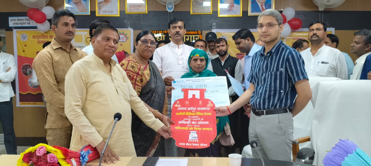 जिला पूर्ति अधिकारी सुनील पुष्कर ने बताया कि जनपद में प्रधानमंत्री उज्ज्वला योजना के अंतर्गत 02 लाख, 85 हजार, 296 लाभार्थी है, जिसमें से आई0ओ0सी0एल0 के कुल 02 लाख, 12 हजार, 108 एवं एच0पी0सी0एल0 के कुल 17 हजार, 657 लाभार्थी, बी0पी0सी0एल0 के 56 हजार 131 लाभार्थी गैस कनेक्शन प्राप्त कर चुके है, के सापेक्ष 02 लाख, 13 हजार, 340 लाभार्थियों द्वारा अपनी ई–के0वाई0सी0 पूर्ण करा ली गई है। ई–के0वाई0सी0 पूर्ण करा चुके लाभार्थियों को योजना के प्रथम चरण में दीपावली पर्व के अवसर पर एक सिलेंडर माह अक्टूबर–दिसंबर–2025 तक तथा द्वितीय चरण होली के अवसर पर एक सिलेंडर 01 जनवरी 2026 से मार्च 2026 तक पूर्णतया निःशुल्क सिलेंडर प्रदान किए जाएंगे, जिन लाभार्थियों की ई–के0वाई0सी0 वर्तमान में अपूर्ण है , जैसे–जैसे पूर्ण होती जाएगी उन्हें निःशुल्क रिफिलिंग मिलने लगेगी। इस मौके पर जिलाधिकारी आगामी त्योहारों धनतेरस, दीपावली की शुभकामनाएं दी और कार्यक्रम में आए हुए मा0 विधायकगणों व अन्य जन प्रतिनिधियों का आभार व्यक्त किया। उन्होंने जिला पूर्ति अधिकारी को निर्देशित किया कि जितने ई–के0वाई0सी0 के लिए लाभार्थी रह गए है उनका कार्ययोजना बनाकर कैम्प के माध्यम से ई–के0वाई0सी0 जल्द से जल्द पूर्ण कराना सुनिश्चित करे, ताकि लाभार्थियों को समय से निःशुल्क सिलेंडर रिफिलिंग का लाभ मिल सके। उन्होंने कहा कि शासन से प्रधानमंत्री उज्ज्वला योजना के गैस कनेक्शन का लक्ष्य प्राप्त हुआ है , के आधार पर पात्रों को योजना से लाभान्वित किया जाय, के लिए इसका व्यापक प्रचार- प्रसार किया जाय, जिससे कि कोई भी पात्र लाभार्थी योजना से वंचित न रहे। इस कार्य को संवेदनशीलता के सावोथ कराते हुए निगरानी बनाए रखे और निरन्तर समीक्षा करते रहे। इस अवसर पर अपर जिलाधिकारी (वित्त/राजस्व) डॉ अविनाश त्रिपाठी, जिला पूर्ति अधिकारी व जनप्रतिनिधियों सहित लाभार्थी उपस्थित रहे।