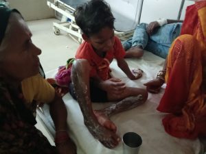 जानकारी के अनुसार कोतवाली क्षेत्र के दरवेशाबाद गांव निवासी अमित की 30 वर्षीय पत्नी आसमा देवी सभी परिजनों के साथ पटाखा छुड़ा रही थी। तभी उसके साड़ी में आग लग गई उसने खुद को बचाने के लिए अपनी साड़ी खोलकर फेंका तो मौके पर मौजूद उसके देवर विजय का 9 वर्षीय पुत्र रचित पर साड़ी जा गिरी जिससे वह भी आग की चपेट में आ गया।