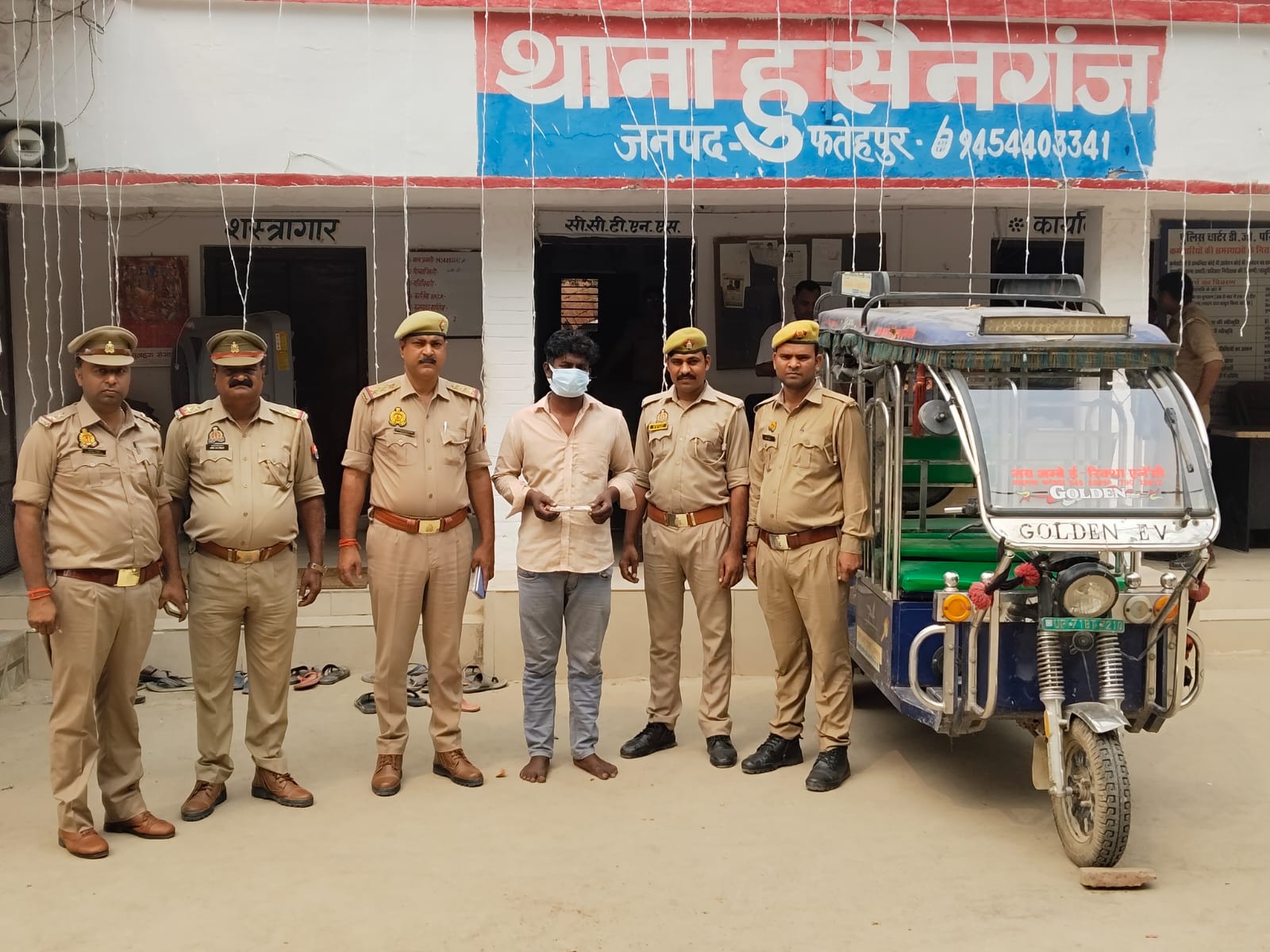 उत्तर प्रदेश फतेहपुर जिले की हुसैनगंज थाने की पुलिस द्वारा लूट सहित हत्या की घटना का खुलाशा करते हुए घटना में संलिप्त आरोपी को मय आला कत्ल नुकीला पेंचकस व लूटे गये ई-रिक्शा के साथ गिरफ्तार किया गया। थाना पर 17 अक्टूबर को थाना क्षेत्र के वादी देवरा नगर गाँव निवासी बहादुर निषाद के 65 वर्षीय पुत्र बाबू राम द्वारा मु0अ0सं0 290/2025 धारा 103(1)/238/309(6) बीएनएस बाबत अज्ञात आरोपी द्वारा वादी के भतीजे नीरज पुत्र ननका उम्र 26 वर्ष की हत्या कर शव को रहिमाल बाबा मन्दिर के पास नहर में छिपाने व ई रिक्शा नं0 UP71BT7210 को लूट लेने के सम्बन्ध में पंजीकृत कराया था। अभियोग के खुलशे के संबंध में पुलिस अधीक्षक अनूप कुमार सिंह के निर्देशन में अभियोग के विवेचक द्वारा विवेचनात्मक कार्यवाई में संकलित इलेक्ट्रानिक भौतिक साक्ष्य के परिशीलन एवं प्रभावी पतारसी में घटना कारित करने वाले अभियुक्त मेवालाल प्रजापति पुत्र स्व० रामदुलारे उम्र करीब 30 निवासी जमरांवा को 20 अक्टूबर को लालीपुर तिराहा से गिरफ्तार कर मृतक नीरज निषाद पुत्र ननका निषाद का लूटा गया ई-रिक्शा नं UP71BT7210 व अभियुक्त की निशादेही पर घटना में उपयोग एक अदद लोहे का नुकीला पेंचकस आला कत्ल बरामद किया गया। गिरफ्तारी वं बरामदगी के आधार पर मुकदमा उपरोक्त में धारा 317(2) बीएनएस की बढ़ोत्तरी कर आरोपी को गिरफ्तार कर न्यायालय रवाना किया गया।