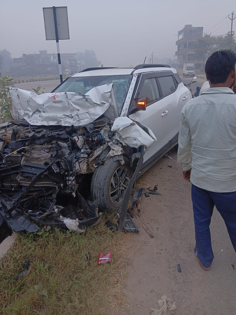उत्तर प्रदेश फ़तेहपुर जिले की खागा कोतवाली क्षेत्र के नेशनल हाइवे 2 पर पश्चिमी बाईपास पर आज प्रात: पौने छह बजे डीसीएम से खागा इओ की कार भिड गई। कार में अधिशासी अधिकारी देवहूति पांडेय व चालक पवन कुमार सवार थे। टक्कर के बाद मिनी ट्रक के पीछे कार घुस जाने के कारण फंस गई और लगभग 200 मीटर तक कार घिसटती हुई चली गई। जानकारी के अनुसार एक जगह जोर का झटका लगने के बाद कार अलग होकर नाले में जा घुसी। टक्कर लगने के बाद ट्रक समेत चालक भाग गया। घायल अधिशासी अधिकारी व चालक को नौबस्ता बाईपास स्थित एक ट्रामा सेंटर में भर्ती कराया गया। आस-पास के लोगों ने बताया कि कार के दोनों एयर बैग खुलने के कारण दोनों की जान बच गई। घायल अधिशासी अधिकारी को प्राथमिक उपचार के बाद उनके पति कानपुर लेकर चले गए है। कार चालक ने बातचीत के दौरान बताया कि सुबह इओ को खागा कार्यालय पहुंचना था। कानपुर से भोर पहर निकले थे। पश्चिमी बाईपास में सर्विस लेन के ऊपर पहुंचते ही आगे चल रहे मिनी ट्रक के चालक ने अचानक ब्रेक मार दी। जिससे कार टकराने के बाद डीसीएम के पीछे घुसकर फंस गई। मामले में कोतवाली प्रभारी राजकुमार सिंह ने बताया कि डीसीएम व चालक में की खोजबीन की जा रही है।