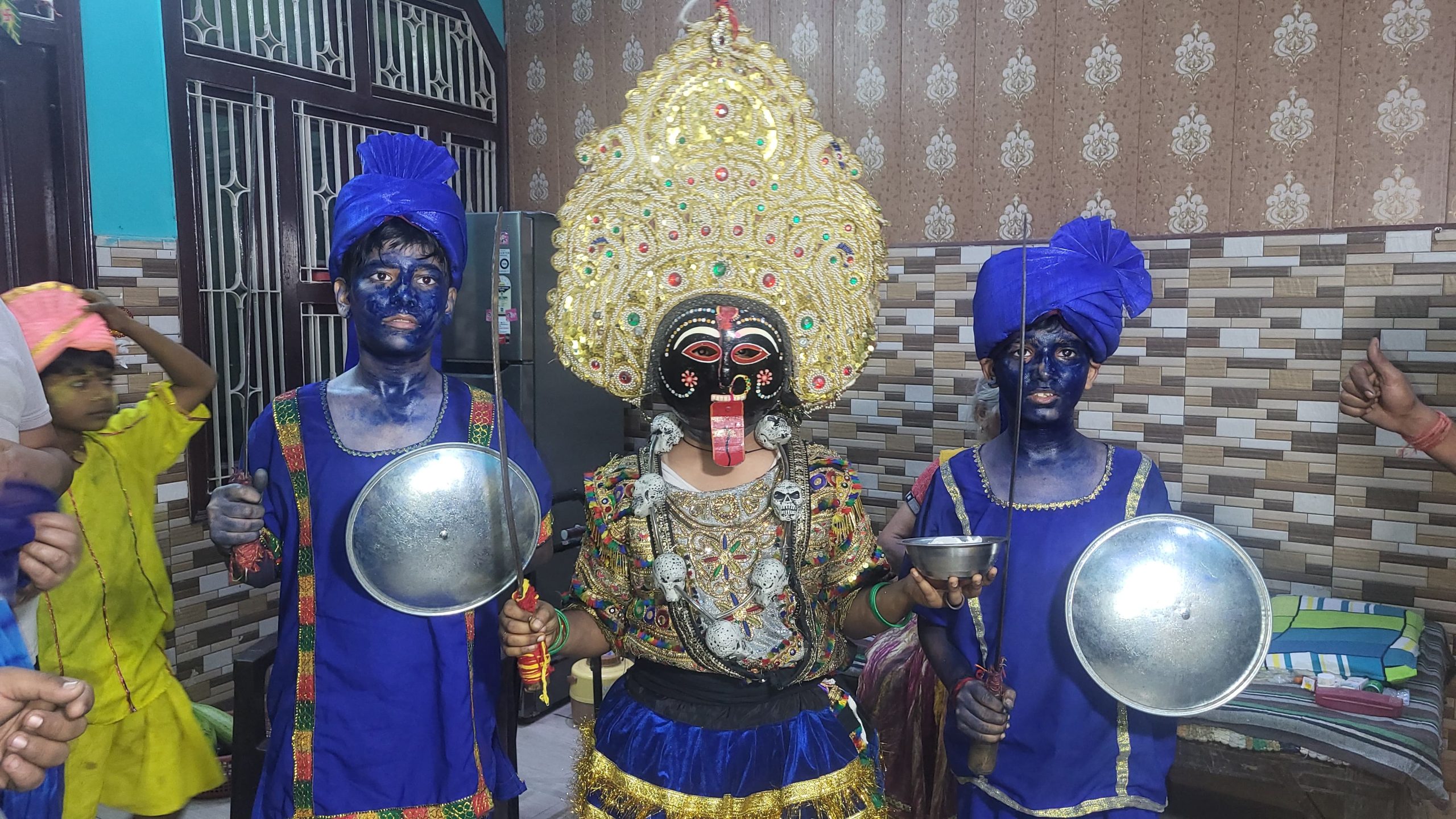 उत्तर प्रदेश बुलंदशहर जिले के।जहांगीराबाद नगर में कुछ दिनों पूर्व से मां काली की शोभायात्रा का आयोजन किया जा रहा है। जिसमें एक व्यक्ति मां काली के स्वरूप रखकर अपनी कला से लोगों को लुभाता है, वहीं एक छोटा बच्चा आधार वार्ष्णेय ने माँ काली का स्वरूप रखकर अपनी कला की प्रदर्शनी से लोगों को झूमने पर मजबूर कर दिया। वहीं काली स्वरूप के साथ नील बने हनी शर्मा व आभार वार्ष्णेय ने भी काली स्वरूप के साथ अपनी कला से लोगों को आनंदित कर दिया। समिति के सदस्यों ने बताया कि काली की शोभायात्रा का शुभारम्भ शुभकामना मैरिज होम से निकट शिव मंदिर से नगरपालिका के सभासद मनोज गुप्ता ने फीता काटकर किया। छोटे छोटे बच्चों द्वारा निकाली गयी माँ शोभायात्रा नगर के रामा गंज से केनरा बैंक वाली गली से मुख्य बाजार होती हुई लक्ष्मी नारायण मंदिर पर समापन हुई। शोभायात्रा में सैकड़ों श्रद्धालुओं ने माँ काली द्वारा दिया गया प्रसाद ग्रहण किया। वहीं मोहल्ला पाठक में भी छोटे छोटे बच्चों ने माँ काली की शोभायात्रा का आयोजन किया। जिसका शुभारम्भ हेमंत मुदगल व प्रभात पाठक ने फीता काटकर किया। इस कार्यक्रम को सफल बनाने में हिर्देश वार्ष्णेय, हिर्देश पाठक, राजा बाबू, रोहित अग्रवाल, सचिन गुप्ता (कल्लन), जय भगवान, देवेंद्र चौटाला व रौनक़ बंसल आदि लोगों का सहयोग रहा। : – बुलंदशहर से मनोज गर्ग की रिपोर्ट