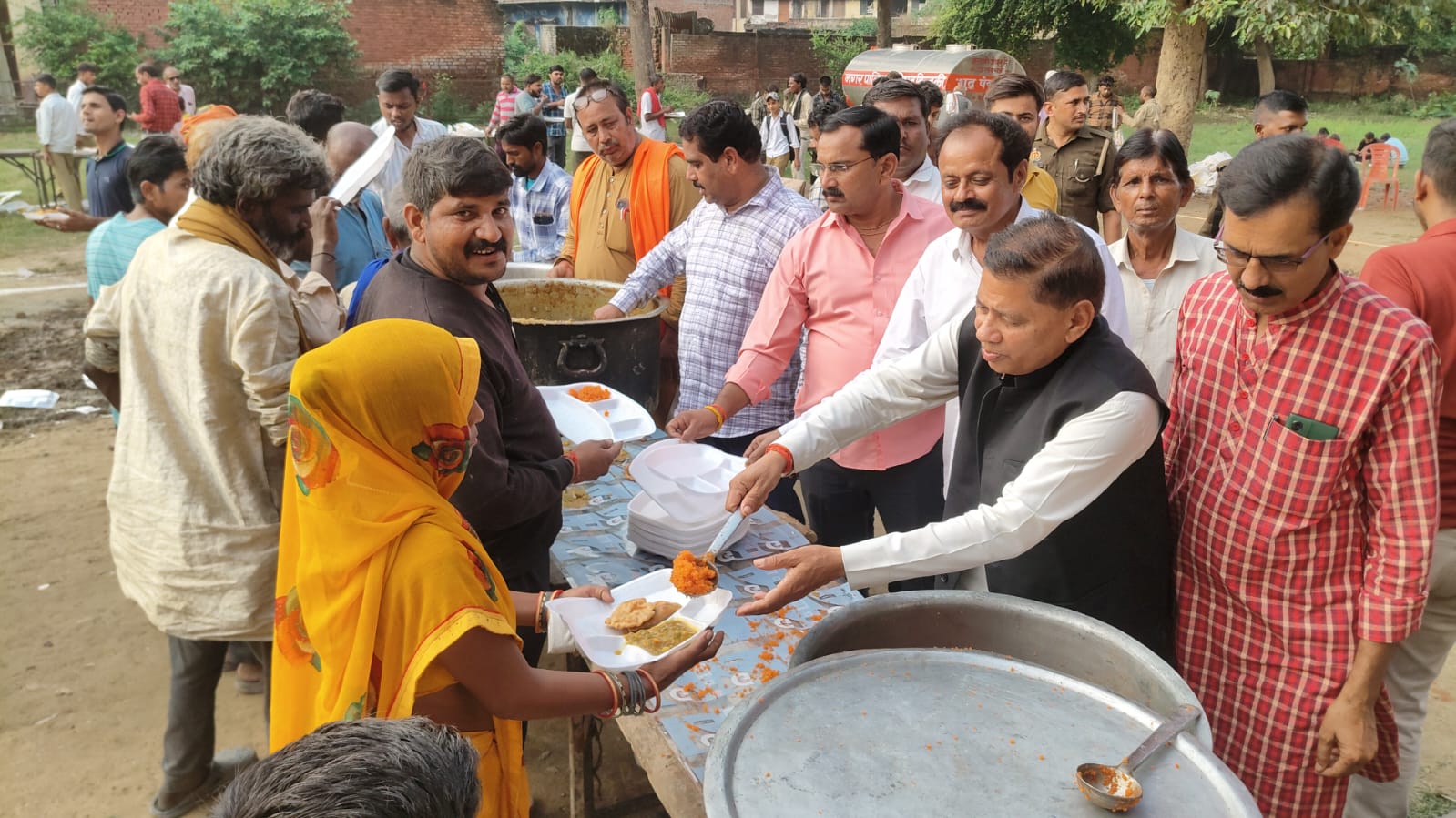 उत्तर प्रदेश फतेहपुर जिले की बिंदकी कस्बे में हारे का सहारा खाटू श्याम बाबा के जन्मोत्सव पर विशाल भंडारे का आयोजन किया गया जिसमें पहुंचे जनप्रतिनिधियों तथा अन्य लोगों ने अपने हाथों से श्रद्धालुओं को प्रसाद बांटा। प्रसाद पाकर श्रद्धालु धन हुए बताया जाता है कि खाटू श्याम बाबा के जन्मोत्सव के बाद इस वर्ष के सभी शुभ कार्य प्रारंभ हो जाते हैं। नगर के कुंवरपुर रोड दयानंद इंटर कॉलेज के सामने स्थित आर्य समाज मंदिर परिसर में हारे का सहारा खाटू श्याम के जन्मोत्सव के मौके पर शनिवार की दोपहर 12:00 बजे से विशाल भंडारे का आयोजन किया गया। जहानाबाद क्षेत्र के भाजपा विधायक राजेंद्र सिंह पटेल, बिंदकी क्षेत्र के विधायक जयकुमार सिंह जैकी, समाजवादी पार्टी के पूर्व जिला अध्यक्ष रामेश्वर दयाल दयालू, भाजपा नेता राजेश तिवारी, नगर पालिका परिषद के अध्यक्ष पति राम कुमार साहू आदि ने भंडारे में अपने हाथों से लोगों को प्रसाद दिया। इस मौके पर भाजपा विधायक राजेंद्र सिंह पटेल ने कहा कि हारे का सहारा कहे जाने वाले खाटू श्याम बाबा का जन्मोत्सव बहुत शुभ दिन है। इस दिन से पूरे वर्ष के सभी मंगल कार्य शुरू हो जाते हैं। इस मौके पर बिंदकी क्षेत्र के विधायक जयकुमार सिंह जैकी ने कहा कि शुक्ल पक्ष के एकादशी का बहुत अधिक महत्व है। इसे देवउठनी एकादशी भी कहते हैं इस त्यौहार के साथ ही सभी शुभ कार्य चालू हो जाते हैं। इस मौके पर समाजवादी पार्टी के पूर्व जिला अध्यक्ष रामेश्वर दयाल दयालू गुप्ता ने कहा कि हारे का सहारा कहे जाने वाले खाटू श्याम बाबा सभी का दुख हरते हैं निराश लोगों के जीवन में खुशहाली लाने का काम करते हैं। इस मौके पर भाजपा के जिला उपाध्यक्ष वीरेंद्र दुबे, भाजपा सभासद सत्यम अग्रवाल, सभासद आनंद सोनकर, पूर्व सभासद दिनेश मिश्रा, रानू तिवारी, विश्व हिंदू परिषद के नगर अध्यक्ष राजेश सिंह, पवन तिवारी, अमन, रवि, कमलेश, अनूप, देवेंद्र, सहित तमाम लोग मौजूद रहे।