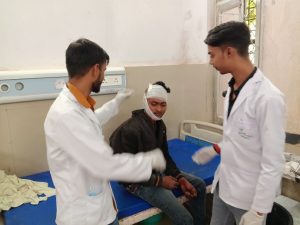 तभी दोनों बाइको की जोरदार भिडन्त हो गई जिसमें संजय व उसकी पत्नी ज्योति और दूसरी बाइक सवार मनोज तीनों घायल हो गए। हादसे की जानकारी संजय की ससुराल गाँव पहुंची तो तुरंत ससुरलीं जन मौके पर पहुंचे और घायल दम्पति को इलाज के लिए जिला अस्पताल पहुंचाया। वही घटना की सूचना सरकारी एंबुलेंस को दी गई तो मौके पर पहुंची 102 एंबुलेंस के ईएमटी अरविंद कुमार व पायलेट सुभाष कुमार ने मनोज को इलाज के लिए जिला अस्पताल पहुंचाया। वहीं जिला अस्पताल पहुंचते ही ड्यूटी पर मौजूद डॉक्टर सभी घायलों का इलाज कर रहे हैं।