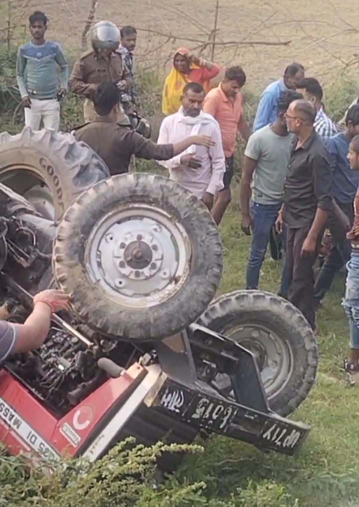 उत्तर प्रदेश फतेहपुर जिले के किशनपुर थाना क्षेत्र के खागा रोड पर कामिनी मैरिज हाल के समीप तेज रफ्तार अनियंत्रित ट्रैक्टर पलटने से चालक ने कूदकर जान बचा लिया। वही ट्रैक्टर पर सवार सब्जी व्यापारी की मौत हो गई और पुत्र गंभीर रूप से घायल हो गया। सूचना पर पहुंची पुलिस ने ट्रैक्टर को हटाकर शव पोस्टमार्टम के लिए भेज दिया। जानकारी के अनुसार किशनपुर थाना क्षेत्र के खागा रोड पर कामिनी मैरिज हाल के समीप शनिवार को दोपहर तीन बजे अनियंत्रित होकर ट्रैक्टर ट्राली खंदक में पलटी गई। हादसे में ट्रैक्टर चालक पतिराखन पुत्र जयपाल निवासी रामपुर ने कूदकर अपनी जान बचाई। ट्रैक्टर में बैठे पिता बेला सोनकर पुत्र राम आसरे उम्र 50 वर्ष निवासी वार्ड 01 खटीकाना की मौके पर दबकर दर्दनाक मौत हो गई।