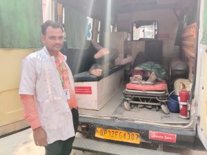 जब रिक्शा थाना राधा नगर थाना क्षेत्र के अन्दौली गांव के समीप पहुंचा तभी अचानक सामने आए बाइक सवार को बचाने के प्रयास में ई-रिक्शा अनियंत्रीत होकर पलट गया। जिससे रिक्शे पर सवार राधा देवी उसका पुत्र रिषभ और रिक्शा चालक रामबाबू तीनों घायल हो गए। फोन कर घटना की सूचना सरकारी एम्बुलेन्स को दी गई। सूचना मिलते ही मौके पर पहुंचे एंबुलेंस के ईएमटी रचित व पायलट सुमित ने घायलों को इलाज के लिए जिला अस्पताल पहुंचाया। जहां ड्यूटी पर मौजूद डॉक्टर भर्ती कर उनका इलाज कर रहे थे। तभी राधा देवी के परिजन इलाज से संतुष्ट न होकर उसको शहर के किसी प्राइवेट अस्पताल इलाज कराने लेकर चले गए।