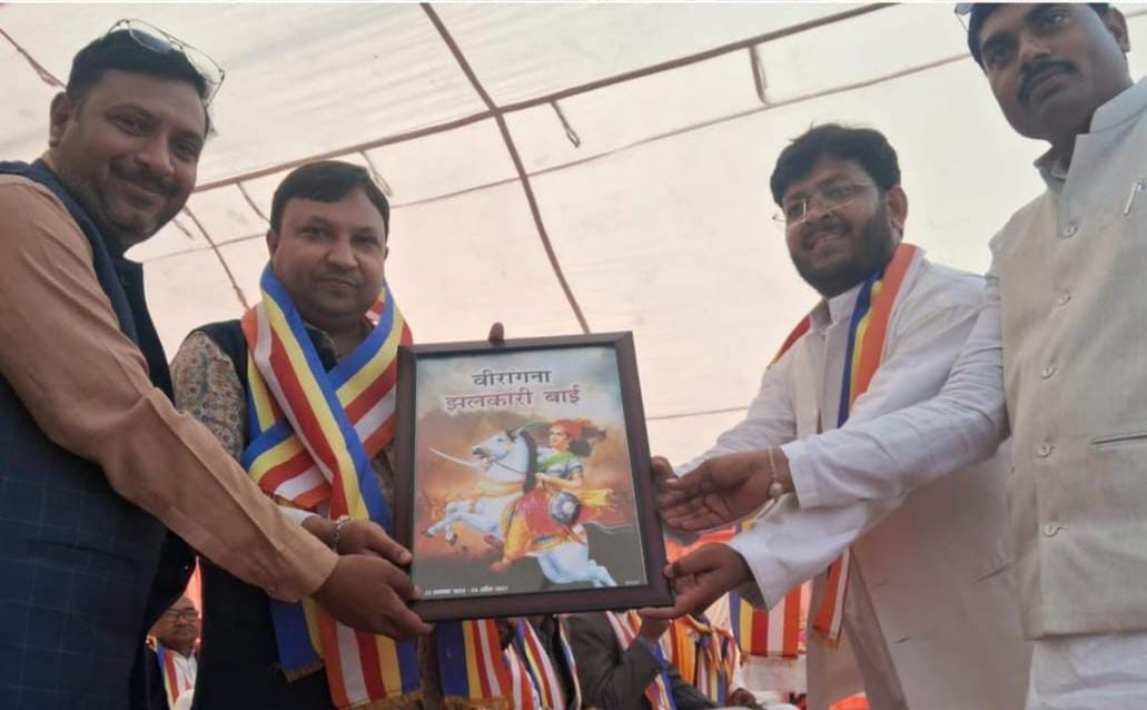 उत्तर प्रदेश फतेहपुर जिले के कबीर एकता महासभा के बैनर तले शनिवार को खागा नगर के नवीन मंडी स्थल के निकट अमर शहीद वीरांगना झलकारी बाई की 195वीं जयंती धूमधाम से मनाई गई। कार्यक्रम की अध्यक्षता प्रधानाचार्य कमलेश कुमार कोरी ने की। समारोह में बड़ी संख्या में लोग उपस्थित रहे और सभी ने वीरांगना झलकारी बाई के साहस और बलिदान को नमन किया। कार्यक्रम में बतौर मुख्य अतिथि नीरज पटेल (संपादक – नेशनल जनमत) शामिल हुए। उन्होंने अपने संबोधन में समाज में बढ़ते ढोंग, पाखंड और अंधविश्वास पर चिंता जताते हुए कहा कि हम सभी को वैज्ञानिक सोच, तर्क और वास्तविकता को अपनाना चाहिए। झलकारी बाई जैसी वीरांगनाओं ने साहस और सत्य के मार्ग पर चलने की प्रेरणा दी है। इस दौरान मुख्य अतिथि ने सबसे बड़ा रोग – क्या कहेंगे लोग और जय बदलाव – तय बदलाव का नारा देते हुए देश महान विभूतियों को अमर न कहकर जिंदाबाद का नारा देने की बात कही, जिसका उपस्थित लोगों ने समर्थन किया। वहीं पूरे कार्यक्रम का संदेश यह रहा कि झलकारी बाई का जीवन संघर्ष, साहस और समर्पण की मिसाल है, जिसे नई पीढ़ी तक पहुंचाना आवश्यक है। विशिष्ट अतिथि के रूप में सांसद नरेश उत्तम पटेल, सपा जिलाध्यक्ष सुरेन्द्र सिंह यादव, नगर पालिका परिषद फतेहपुर के अध्यक्ष एडवोकेट राजकुमार मौर्य, साइबर जर्नलिस्ट एसोसिएशन के राष्ट्रीय महासचिव शीबू खान, प्रदेश अध्यक्ष शहंशाह आब्दी, जयराम वर्मा सहित कई गणमान्य लोग उपस्थित रहे। इन सभी अतिथियों ने झलकारी बाई के योगदान को भारतीय स्वतंत्रता संग्राम का प्रेरणादायक अध्याय बताया और समाज में शिक्षा, समानता और जागरूकता बढ़ाने की अपील की। वहीं कार्यक्रम में विशेष अतिथि के रूप में बासुदेव पासी, कवि शिवशरण बंधु, रामशंकर सविता और डॉ. अमित पाल मौजूद रहे। वक्ताओं ने झलकारी बाई के जीवन, संघर्ष और समाज में उनके योगदान पर विस्तार से प्रकाश डाला। इस दौरान स्वर्गीय मुलायम सिंह यादव की जयंती पर उनके चित्र पर पुष्प अर्पित कर श्रद्धांजलि भी दी गई। साथ ही उपस्थित लोगों को संविधान सभा की शपथ भी दिलाई गई। इस समारोह में मेधावी छात्रों को भी सम्मानित किया गया। जिनमें कक्षा दसवीं के नयंशी वर्मा (93%), स्वेता देवी (85%), प्रेमकुमार (82%), अनूप वर्मा (80%) तथा 12वीं की अर्पिता (81%) शामिल रहीं। अतिथियों ने छात्रों को आगे बढ़ने और वीरांगना झलकारी बाई के आदर्शों से प्रेरणा लेने की सलाह दी। कार्यक्रम का सफल आयोजन इंजी. सिद्धार्थ गौतम, सोनू वर्मा, सुरेंद्र कोरी (प्रधान), चंद्रभान कोरी (प्रधान), अनंत गौतम, राजकुमार कोरी व अन्य सदस्यों द्वारा किया गया। समारोह में दुर्गा प्रसाद कोरी, रामप्रसाद कोरी, रामबहादुर कोरी, सियाम्बर लाल कोरी, रमेश चंद्र कोरी, सतेंद्र कोरी, रामप्रीत, ननब