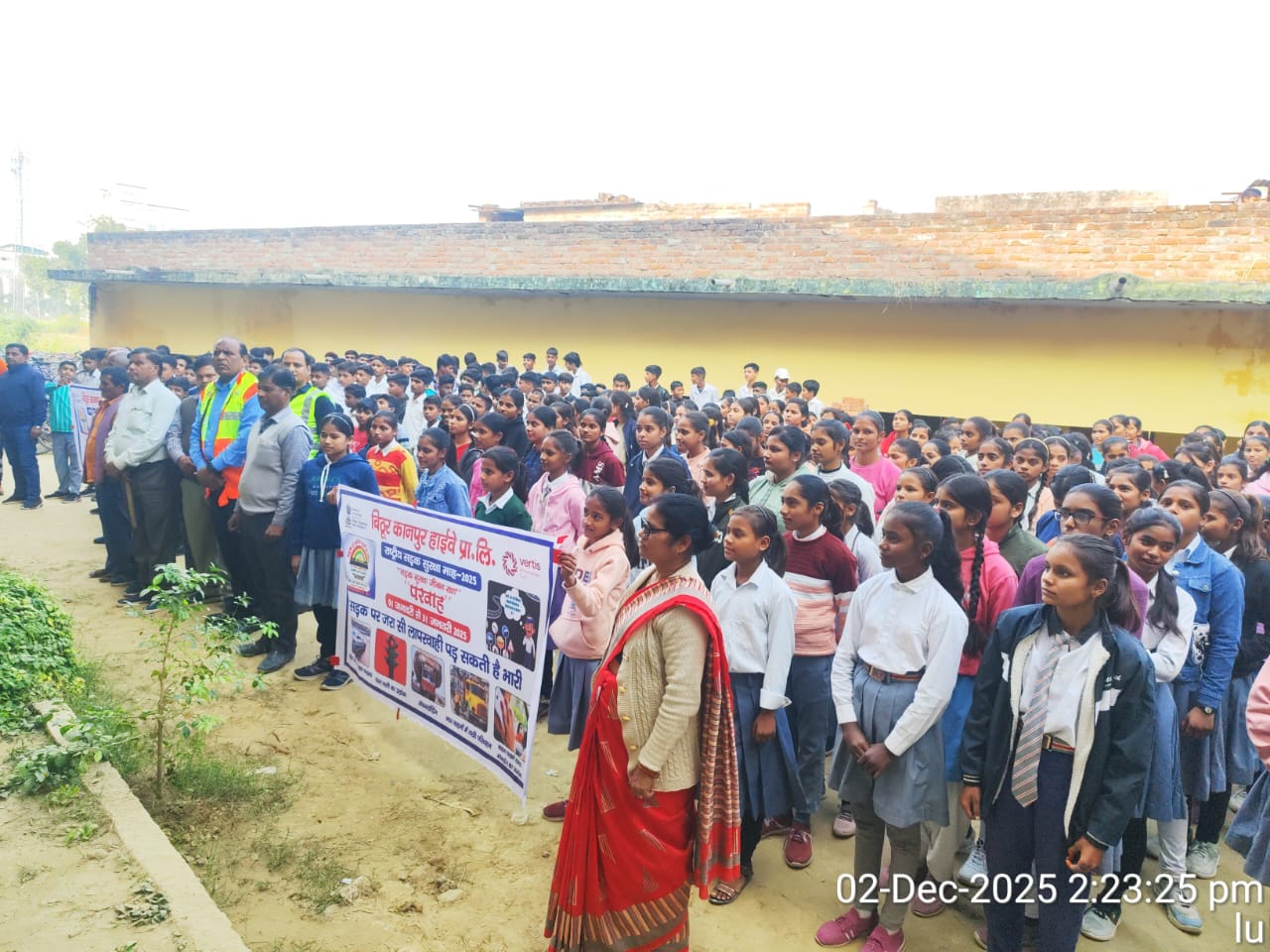कानपुर नगर : शासन की सर्वोच्च प्राथमिकता यातायात सड़क सुरक्षा माह जन जागरूकता अभियान के तहत भारतीय राष्ट्रीय राजमार्ग प्राधिकरण के प्रोजेक्ट डायरेक्टर पंकज यादव पीआईयू कानपुर के निर्देशानुसार वर्टिस इंफ्रास्ट्रक्चर ट्रस्ट, बिठूर कानपुर हाईवेज के प्रोजेक्ट मैनेजर आलोक सिनहा के मार्गदर्शन में मनसुख लाल इंटर कॉलेज शिवराजपुर में प्रधानाचार्य सुनील कुमार पाल एवं कानपुर बिठूर हाईवेज के सुरक्षा अधिकारी संदीप तोमर की उपस्थित मे सड़क सुरक्षा जीवन रक्षा कार्यक्रम किया गया। इस मौके पर राजस्थान सरकार द्वारा सड़क सुरक्षा राज्य स्तरीय पुरस्कार विजेता वरिष्ठ सीएसआर मैनेजर फिरोज़ खान ने उपस्थित स्कूली बच्चों से कहा कि हमें यातायात के नियमों का पालन करें। चाहिए दुपहिया वाहन चालक हेलमेट अवश्य लगाएं घर से निकलते समय बाइक चालक मोबाइल से बात न करें।