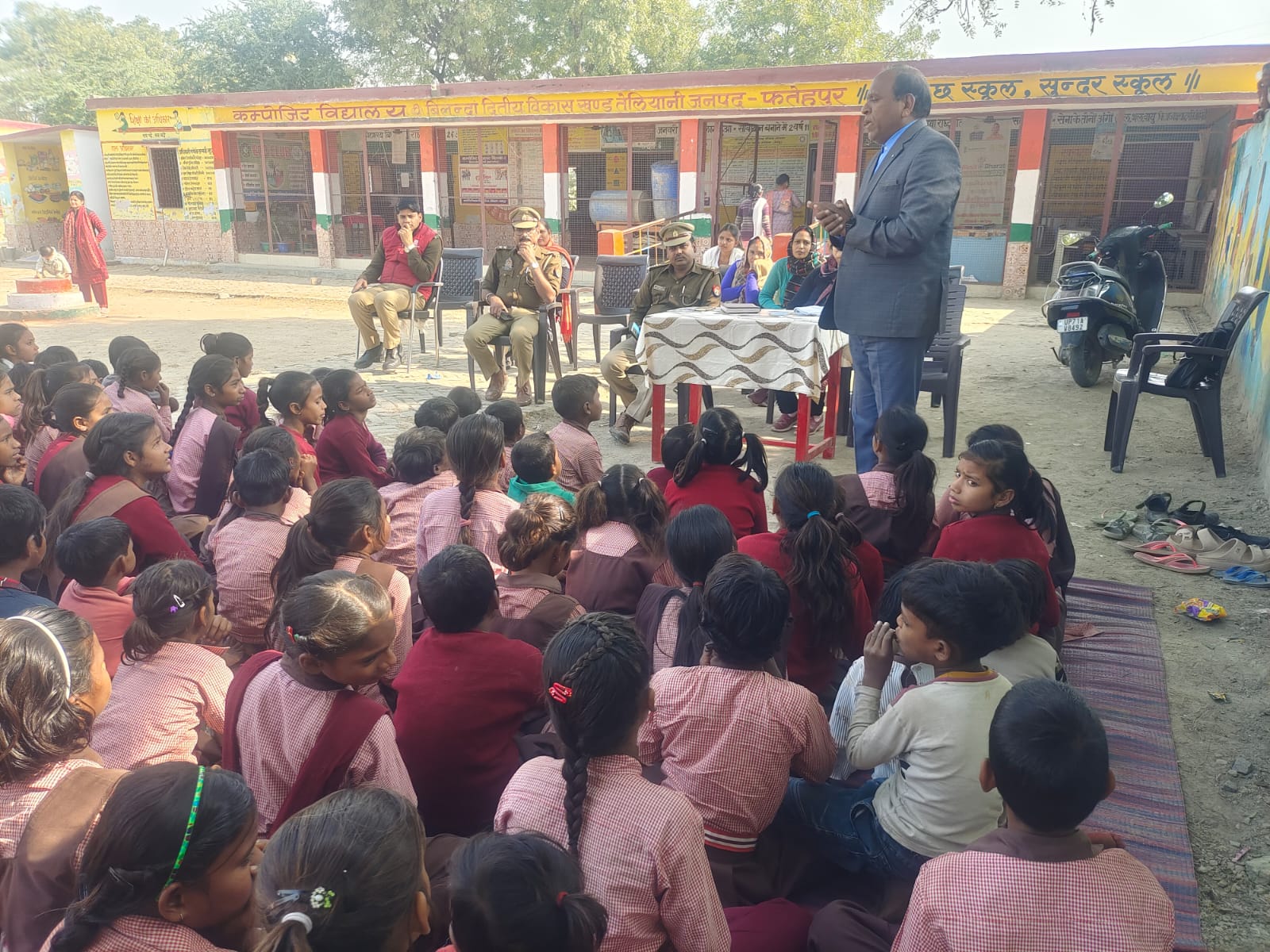 उत्तर प्रदेश फतेहपुर जिले में शासन की सर्वोच्च प्राथमिकता सड़क सुरक्षा जीवन रक्षा जागरूकता अभियान भारतीय राष्ट्रीय राजमार्ग प्राधिकरण (NHAI) के प्रोजेक्ट डायरेक्टर पंकज यादव पीआईयू कानपुर, त्रिवेणी संगम हाइवे प्राइवेट लिमिटेड प्रबंधन के निर्देशानुसार आज एबी इंटरनेशनल स्कूल के डिप्टी डायरेक्टर अमित माथुर एवं प्राथमिक कंपोजिट विद्यालय बिलंदा में पुलिस उप निरीक्षक अरुण कुमार मौर्य पुलिस उप निरीक्षक सतीश मौर्य की उपस्थित में कार्यक्रम किया गया।