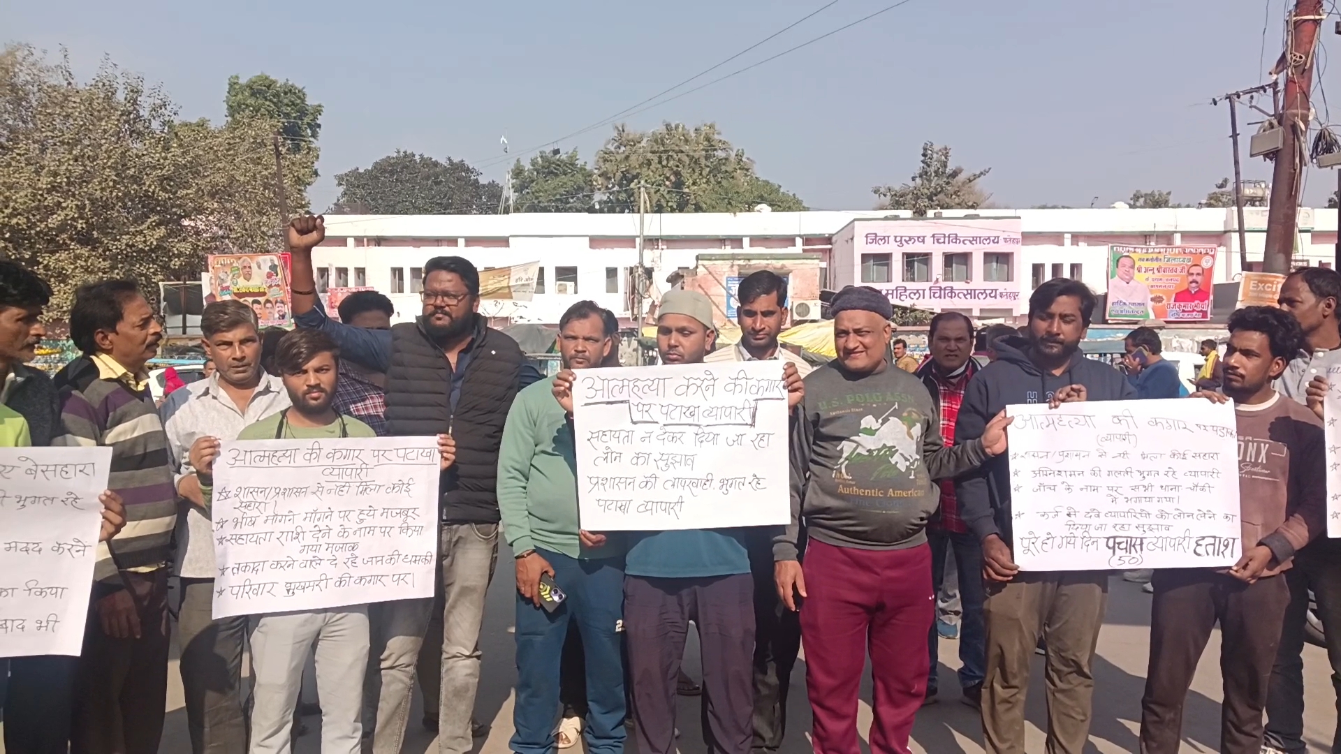 कर्ज में डूबे सभी पटाखा व्यापारियों को सरकार की तरफ से प्रशासन द्वारा लोन के लेने के लिये कहा जा रहा है। पटाखा व्यापारियों का कहना है कि पटाखा व्यापारी दो वक्त की रोटी नहीं खा पा रहा है। कर्जदार व्यापारियों के घर जाकर पैसा वसूलने के लिये दे धमकी दे रहे हैं। जिससे व्यापारी परिवार आत्महत्या करने की कगार पर आ चुका है। इस मौके पर पीड़ित पटाखा ब्यापारी दीपक कश्यप, राजन साहू, प्रदीप गुप्ता, मशरम अली, आरिफ, सतीशचन्द्र, मनीष अवस्थी, पुत्तु लाल, आदित्य राज सिंह, संजू श्रीवास्तव, राजन मिश्रा, शिवम गुप्ता, सुनील शिवहरे, वैभव मिश्री मौजूद रहे।