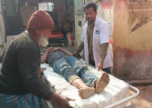 आज वह सुबह रोड किनारे किसी काम से पैदल जा रहा था। तभी तेज रफ्तार अज्ञात वाहन उसको टक्कर मारते हुए निकल गया। जिससे जाहिद हुसैन रोड़ पर गिरकर गम्भीर रूप से घायल हो गया। हादसे की जानकारी उसके पड़ोसी दुकानदारों को हुई तो तुरंत उसको इलाज के लिए गोपालगंज सीएचसी पहुंचाया। जहां डॉक्टर ने प्राथमिक उपचार के बाद सरकारी एंबुलेंस के ईएमटी राम सिंह व पायलट गुलाब के साथ जिला अस्पताल के लिए रेफर कर दिया। वहीं जिला अस्पताल पहुंचते ही ड्यूटी पर मौजूद डॉक्टर भर्ती कर उसका इलाज कर रहे हैं। घायल के साथ अस्पताल आए उसके पड़ोसी दुकानदार मो० नसीर अहमद ने बताया आज सुबह यह अपनी दुकान के पास रोड किनारे था तभी तेज रफ्तार अज्ञात वाहन टककर मारते हुए निकल गया। यह घायल होकर रोड पर पड़ा था जानकरीं होने पर इलाज के लिए लेकर आए है।