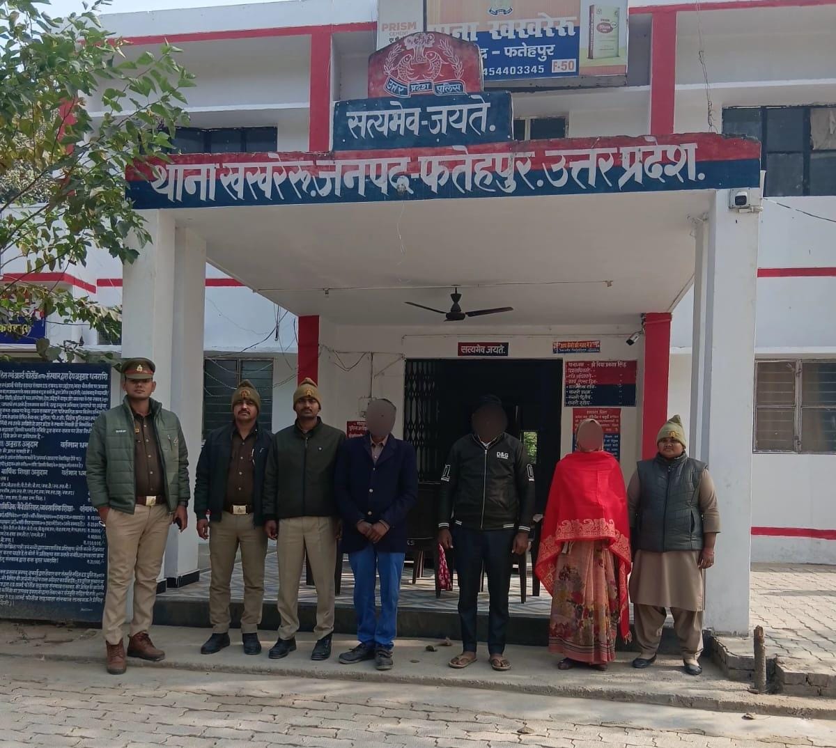 उत्तर प्रदेश फतेहपुर जिले की खखरेरू पुलिस द्वारा उत्तर प्रदेश विधि विरूद्ध धर्म संपरिवर्तन प्रतिषेध अधिनियम- 2021 के तहत पंजीकृत अभियोग में 03 वांछित आरोपियो को गिरफ्तार किया गया। पुलिस अधीक्षक फतेहपुर श्री अनूप कुमार सिंह के निर्देशन में वांछित/वारण्टियों की गिरफ्तारी व अपराध एवं अपराधियों के विरुद्ध चलाये जा रहे अभियान के क्रम में दिनांक 05.01.2026 को थाना खखरेरू पुलिस द्वारा मु0अ0सं0 03/2026 धारा 352, 351(2) BNS व 3/5(1) उत्तर प्रदेश विधि विरूद्ध धर्म संपरिवर्तन प्रतिषेध अधिनियम-2021 थाना खखरेरू जनपद फतेहपुर से सम्बन्धित नामजद/वांछित आरोपी थानां क्षेत्र के रतनपुर गाँव निवासी शिवचरन के 30 वर्षीय पुत्र सन्तलाल और उसके 45 वर्षीय भाई सन्तोष कुमार व सन्तोष कुमार की 28 वर्षीय पत्नी अलखरानी पासवान को गिरफ्तार कर न्यायालय भेजा गया।