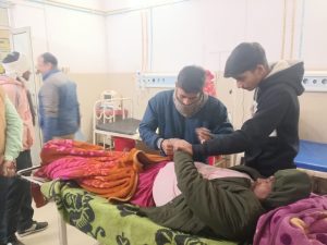 जब वह थाना क्षेत्र के आरा मासीन के पास पहुंचा तभी दूसरे बाइक सवार से उसकी भिड़ंत हो गई। जिससे अमृत लाल।गंभीर रूप से घायल हो गया हादशे की जानकारी उसके परिजनों को हुई तो मौके पर पहुंचे और उसको इलाज के लिए हथगांम सीएचसी लेकर पहुंचे। जहां डॉक्टर ने प्राथमिक उपचार के बाद जिला अस्पताल के लिए रेफर कर दिया तो परिजन अपने प्राइवेट वाहन से जिला अस्पताल लेकर पहुँचे जहां ड्यूटी पर मौजूद डॉक्टर भर्ती कर उसका इलाज कर रहे है।