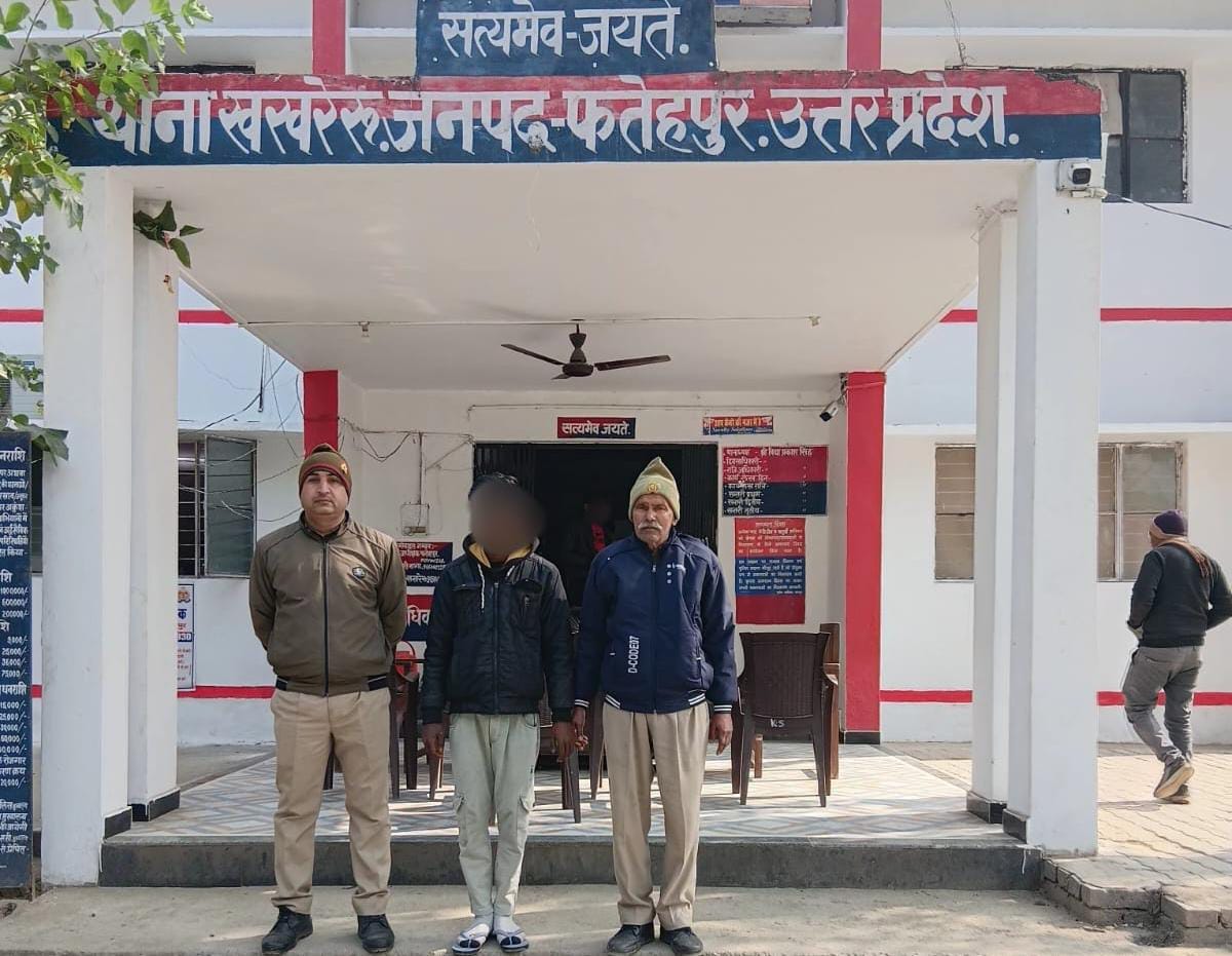 उत्तर प्रदेश फतेहपुर जिले की खखरेरू पुलिस टीम व सर्विलांस सेल की संयुक्त टीमों द्वारा 04 घंटे के अंदर नाबालिग अपहृता को किया गया सकुशल बरामद व अभियोग से संबंधित वांछित आरोपी गिरफ्तार। पुलिस अधीक्षक अनूप कुमार सिंह के निर्देशन में वांछित/वारण्टियों की गिरफ्तारी व अपराध एवं अपराधियों के विरुद्ध चलाये जा रहे अभियान में थाना खखरेरू पुलिस द्वारा अपहरण में संबंधित मु0अ0सं0 06/2026 धारा 137(2), 87 बीएनएस थाना खखरेरु से सम्बन्धित नाबालिग अपहृता को सर्विलांश सेल की मदद से अभियोग पंजीकृत किये जाने के 04 घंटे के अन्दर बरामद कर लिया गया। और नामजद/वांछित आरोपी थाना क्षेत्र के सैदपुर भुरूही गाँव निवासी पृथीपाल के 19 वर्षीय पुत्र सचिन कुमार को आज दिनांक 09.01.2026 को गिरफ्तारी कर विधिक कार्यवाई कर न्यायालय भेजा गया है।