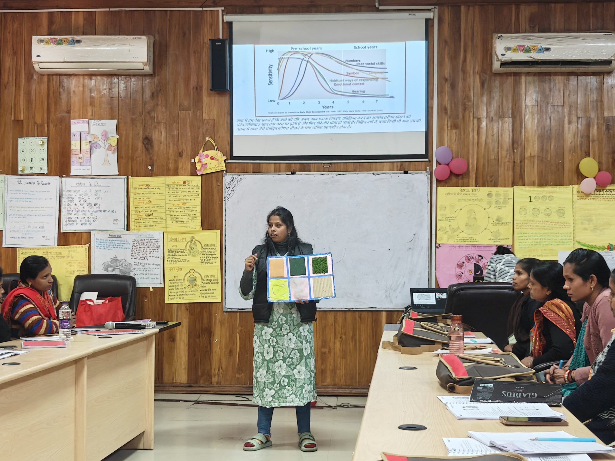 उत्तर प्रदेश फतेहपुर जिले में निदेशक बाल विकास सेवा एवं पुष्टाहार, लखनऊ (उ.प्र.) के निर्देशानुसार तथा कार्यालय–महानिदेशक, दीनदयाल उपाध्याय राज्य ग्राम्य विकास संस्थान, लखनऊ के सहयोग से सम्पूर्ण प्रदेश में नवनियुक्त 19,424 आंगनबाड़ी कार्यकत्रियों के लिए आयोजित 7 दिवसीय आवासीय आधारभूत प्रशिक्षण कार्यक्रम के अंतर्गत जनपद स्तर पर क्षेत्रीय ग्राम्य विकास संस्थान एवं जिला ग्राम्य विकास संस्थान में सघन प्रशिक्षण संचालित किया जा रहा है। इसी क्रम में जनपद में दूसरे बैच का समापन दिनांक 15 जनवरी, 2026 को किया गया। जनपद में कुल 326 आंगनबाड़ी कार्यकत्रियों को सात पृथक बैचों में प्रशिक्षण दिया जा रहा है। यह प्रशिक्षण जिला कार्यक्रम अधिकारी दीप्ती त्रिपाठी के निर्देशानुसार, बाल विकास परियोजना अधिकारी अजय सिंह, अर्जुन सिंह, मुख्य प्रशिक्षक शिव कुमार गुप्ता, माधुरी सिंह सहित अन्य विशेषज्ञों द्वारा प्रदान किया जा रहा है। दूसरे बैच के सातवें एवं अंतिम दिन आंगनबाड़ी कायाकल्प सत्र के दौरान लखनऊ से पधारे वैन लीर फाउंडेशन के वरिष्ठ कार्यक्रम अधिकारी अनुभव गर्ग ने नीति आयोग एवं पंचायती राज के सहयोग से आकांक्षी जनपद फतेहपुर में विभिन्न नवाचारों के माध्यम से विकसित किए जा रहे लाइटहाउस आंगनबाड़ी केंद्रों की भूमिका पर प्रकाश डाला। उन्होंने आंगनबाड़ी केंद्रों की आधारभूत संरचनाओं को बाल-संवेदनशील बनाने की तकनीकों पर चर्चा की तथा पालकों/देखभालकर्ताओं के स्वास्थ्य एवं कल्याण को बच्चों के समग्र विकास से जोड़कर समझाया।