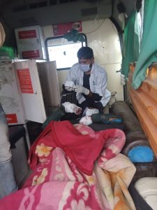 जब ट्रैक्टर हथगांम थानां क्षेत्र के भुनकापुर चौराहे के समीप पहुंचा तभी ब्रेकर पर ट्रैक्टर उछला और भुण्डल ट्रैक्टर से नीचे गिरकर गम्भीर रूप से घायल हो गया। घायल अवस्था उसको इलाज के लिए हथगांम सीएचसी पहुंचाया गया। जहां डॉक्टर ने प्राथमिक उपचार के बाद सरकारी एंबुलेंस के ईएमटी अंकित कुमार व पायलेट सुनील कुमार के साथ जिला अस्पताल के लिए रेफर कर दिया। वहीं जिला अस्पताल पहुंचते ही ड्यूटी पर मौजूद डॉक्टर भर्ती कर उसका इलाज कर रहे हैं।