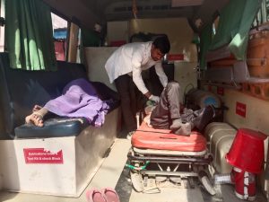 आज डॉक्टर ने उसको डिस्चार्ज किया जिसकी जानकारी उसके पुत्र राम किशोर को हुई तो वह बाइक पर सवार होकर जिला अस्पताल पहुंचा और अपनी 62 वर्षीय माता रामदेइ व 65 वर्षीय पिता गंगा राम को बाइक पर सवार कर घर वापस लौट रहा था। जब उसकी बाइक सदर कोतवाली क्षेत्र के चौफेरवा गाँव के समीप पहुंची तभी तेज रफ्तार अज्ञात डीसीएम बाइक को टक्कर मारते हुए निकल गई। जिससे बाइक पर सवार दम्पत्ति रोड पर गिरकर घायल हो गए। फोन कर घटना की सूचना सरकारी एम्बुलेन्स को दी गई। सूचना मिलते ही मौके पर पहुंची एम्बुलेन्स के ईएमटी जगदीश कुमार व पायलेट अनूप ने घायलो को इलाज के लिए जिला अस्पताल पहुंचाया। जहाँ ड्यूटी पर मौजूद डॉक्टर भर्ती कर उनका इलाज कर रहे है। घायलो के साथ अस्पताल पहुंचे उनके पुत्र राम किशोर ने घटना की जानकारी दिया।