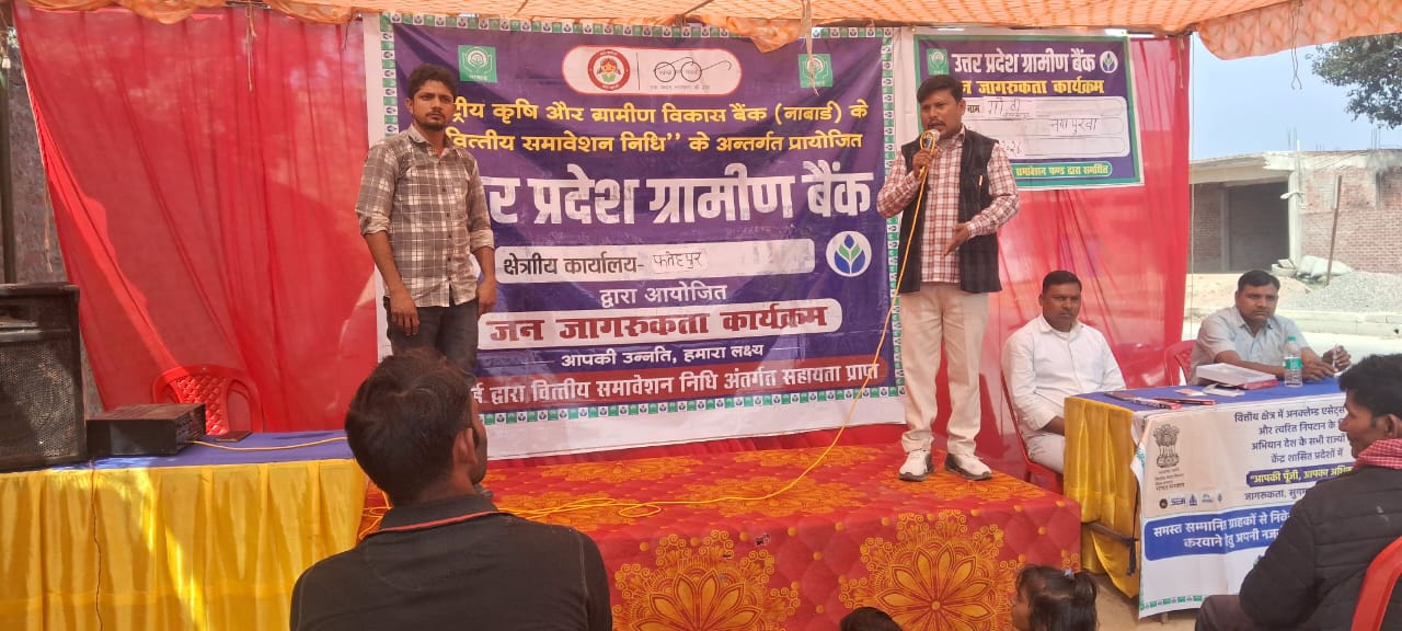 उत्तर प्रदेश फतेहपुर जिले के ऐरायाँ विकास खंड के नयापुरवा मजरे मोहम्मदपुर गौंती में उत्तर प्रदेश ग्रामीण बैंक एवं मैजिक ऑफ फोक फाउंडेशन के संयुक्त तत्वावधान में वित्तीय साक्षरता कैंप का आयोजन किया गया। इस कैंप का उद्देश्य ग्रामीणों को बैंकिंग सेवाओं, सरकारी योजनाओं और वित्तीय सुरक्षा के प्रति जागरूक करना रहा। कैंप के दौरान बैंक मैनेजर अभिषेक कुमार ने जादू के माध्यम से रोचक शैली में लोगों को जागरूक किया। उन्होंने प्रधानमंत्री जीवन ज्योति बीमा योजना, प्रधानमंत्री सुरक्षा बीमा योजना सहित अन्य बैंकिंग योजनाओं की विस्तार से जानकारी दी और बताया कि किस प्रकार आम लोग इन योजनाओं का लाभ उठाकर अपने भविष्य को सुरक्षित बना सकते हैं। कार्यक्रम में उपस्थित समाजसेवी सुनील कुमार गौतम ने ग्रामीणों को सामाजिक और वित्तीय साक्षरता के महत्व पर प्रकाश डाला। उन्होंने कहा कि आज के समय में शिक्षा और जागरूकता ही विकास की सबसे बड़ी कुंजी है। इस अवसर पर उन्होंने बच्चों को पेन और पेंसिल वितरित कर उन्हें साक्षर बनने और पढ़ाई के प्रति प्रेरित किया। कैंप में पप्पू पटेल, संजय पटेल, मोहनलाल पटेल, मानसिंह पटेल सहित दर्जनों ग्रामीण मौजूद रहे। ग्रामीणों ने कैंप को उपयोगी बताते हुए कहा कि इस तरह के कार्यक्रमों से उन्हें बैंकिंग सुविधाओं और सरकारी योजनाओं की सही जानकारी मिलती है, जिससे वे अपने जीवन को बेहतर ढंग से संचालित कर सकते हैं।