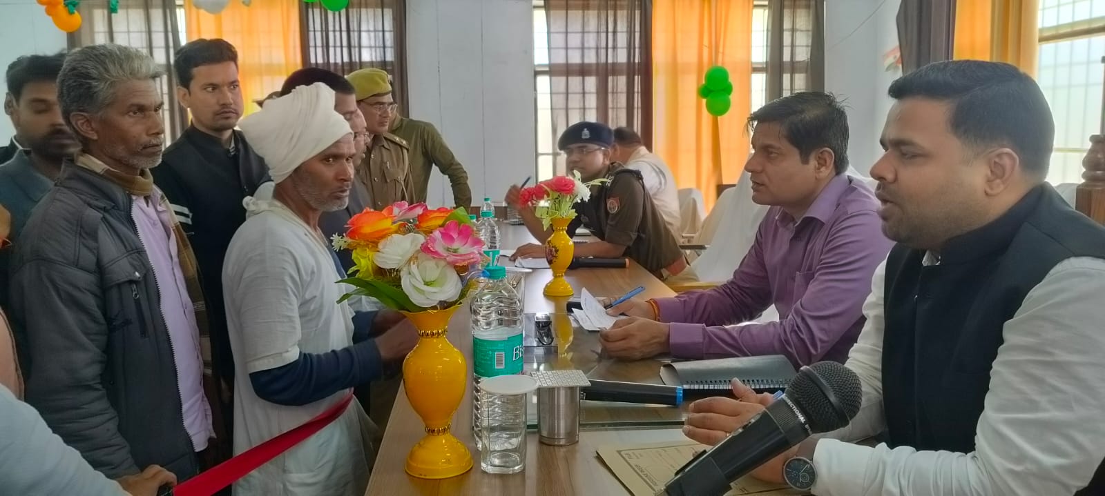 उत्तर प्रदेश फतेहपुर जिले में अपर जिलाधिकारी सुनील कुमार की अध्यक्षता में तहसील खागा के सभागार में सम्पूर्ण समाधान दिवस का आयोजन जिला स्तरीय अधिकारियों की उपस्थिति में किया गया। सम्पूर्ण समाधान दिवस में कृषि, सिंचाई, राजस्व, शिक्षा, पुलिस, स्वास्थ्य, चिकित्सा, प्रधानमंत्री/मुख्यमंत्री आवास, वृद्धा, दिव्यांग, निराश्रित महिला पेंशन, नलकूप, राजस्व, प्रधानमंत्री/मुख्यमंत्री आवास, मनरेगा, उद्यान, चकबंदी, जिला पूर्ति आदि विभागों से संबंधित कुल 196 शिकायतकर्ताओं से शिकायतें प्राप्त हुई, के सापेक्ष 22 का मौके पर उपस्थित अधिकारियों द्वारा निस्तारित कर दिया गया, शेष प्रार्थना पत्रों को सम्बंधित अधिकारियों को हस्थांतरित करते हुए समय सीमा के अन्दर गुणवत्तापूर्ण निस्तारण करने के निर्देश दिये। उन्होंने सम्पूर्ण समाधान दिवस में प्राप्त शिकायतों को निर्धारित समय सीमा में गुणवत्तापूर्व निस्तारण के सम्बंधित विभागीय अधिकारियों को निर्देश दिए। सम्पूर्ण समाधान दिवस में उपस्थित फरियादियों की समस्याओं को सुनते हुए अपर जिलाधिकारी ने कहा कि फरियादियों की शिकायतों का त्वरित निस्तारण शिकायतकर्ता की संतुष्टि ही सम्पूर्ण समाधान दिवस का उद्देश्य है। उन्होंने संपूर्ण समाधान दिवस में सभी विभागीय अधिकारियों को निर्देश दिए कि शासकीय कार्याे में लापरवाही न बरती जाये, सभी लाभार्थीपरक योजनाओ का लाभ हर गरीब पात्र व्यक्ति को मिले, कोई भी गरीब व्यक्ति शासन की जन कल्याणकारी , लोक कल्याणकारी योजनाओं से वंचित न रहने पाये। इस अवसर उप जिलाधिकारी खागा, मुख्य चिकित्साधिकारी, पुलिस क्षेत्राधिकारी खागा, तहसीलदार, नायब तहसीलदार, जिला विकास अधिकारी, जिला प्रोबेशन अधिकारी, जिला कार्यक्रम अधिकारी , जिला समाज कल्याण अधिकारी, खंड विकास अधिकारी सहित राजस्व एवं पुलिस विभाग से सम्बंधित अन्य अधिकारी/कर्मचारीगण उपस्थित रहें।