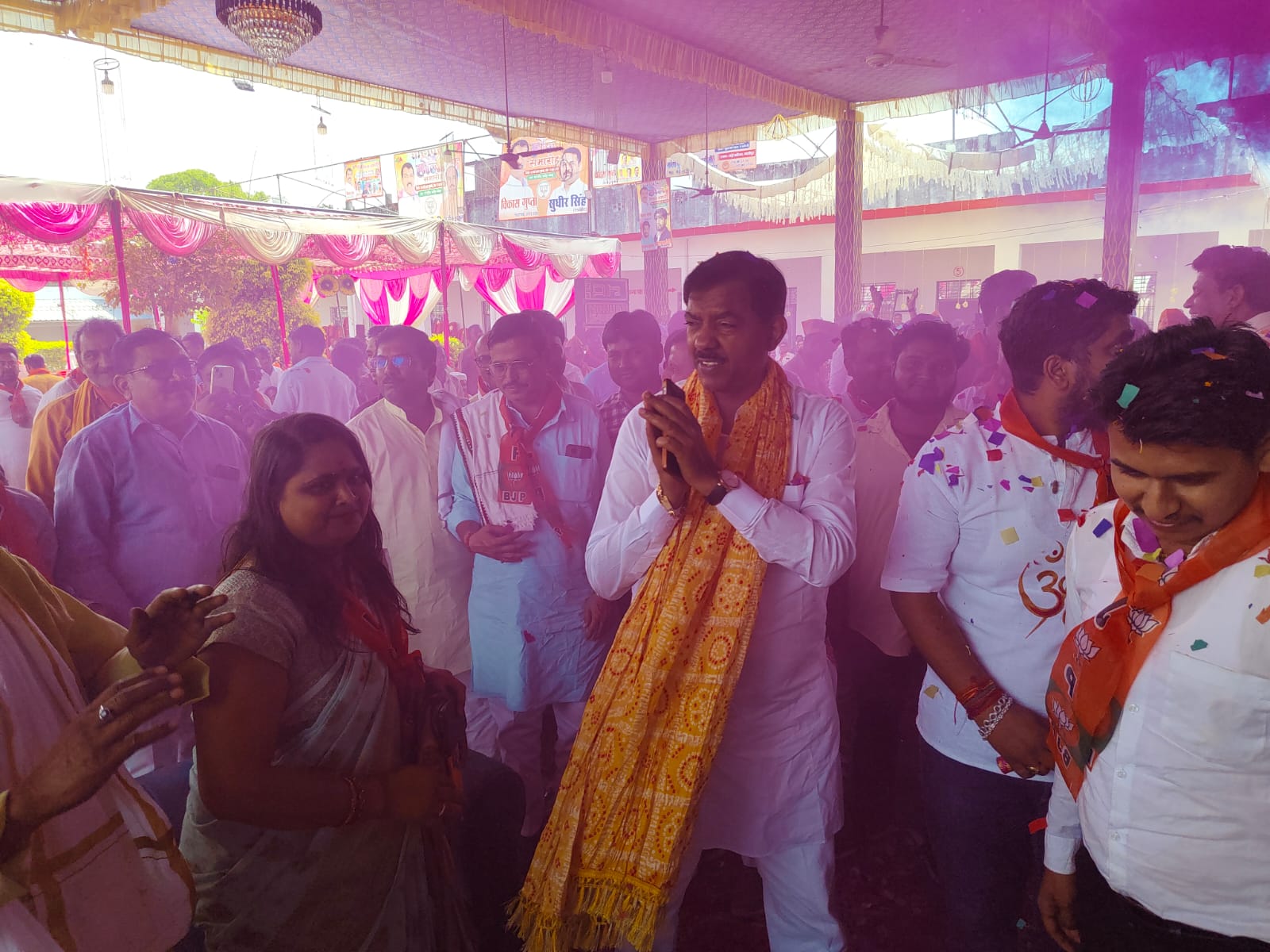 उत्तर प्रदेश फ़तेहपुर जिले में 13 मार्च दिन शुक्रवार को अयाह शाह विधानसभा क्षेत्र के गाजीपुर कस्बा स्थित एक गेस्ट हाउस में विधायक विकास गुप्ता द्वारा होली मिलन समारोह का भव्य आयोजन किया गया। कार्यक्रम में बाँदा, कानपुर के अरक्रेस्टा कलाकारों द्वारा प्रस्तुत किए गए रंगारंग सांस्कृतिक कार्यक्रमों ने उपस्थित जनसमूह का मन मोह लिया। कलाकारों की प्रस्तुतियों पर लोगों ने जमकर तालियां बजाईं और होली मिलन समारोह का आनंद लिया। इस समारोह का आयोजन क्षेत्रीय विधायक विकास गुप्ता के द्वारा किया गया। कार्यक्रम में मुख्य अतिथि के रूप में क्षेत्रीय प्रभारी प्रकाश पाल उपस्थित रहे। समारोह में आए कार्यकर्ताओं और पदाधिकारियों का फूल -मालाओं, अंगवस्त्र तथा स्मृति चिन्ह देकर सम्मानित किया गया। इसके बाद सभी ने एक-दूसरे को अबीर-गुलाल लगाकर और फूलों की होली खेलकर पर्व की खुशियां साझा कीं। कार्यक्रम स्थल पर अतिथियों और कार्यकर्ताओं के लिए गुझिया, ठंडाई तथा भोजन की भी उत्तम व्यवस्था की गई थी। पूरे कार्यक्रम में उत्साह और भाईचारे का माहौल देखने को मिला। इस अवसर पर पूर्व मंत्री एवं पूर्व जिला अध्यक्ष रणवेंद्र प्रताप सिंह उर्फ धुन्नी सिंह, मुखलाल पाल, आशीष मिश्रा, प्रमोद द्विवेदी, बिंदकी विधायक जयकुमार जैकी, संतोष द्विवेदी, प्रधान अनिल शुक्ला, आचार्य कमलेश योगी, ज्ञानेंद्र सचान उर्फ ज्ञानू, रविंद्र पाल सिंह, पंकज त्रिपाठी, तेज बहादुर सिंह चौहान, अर्चना त्रिपाठी, स्वरूप राज सिंह, जूली, काली शंकर श्रीवास्तव, सुरेश परमार, रजोल मिश्रा, नीरज सिंह, अरिमर्दन सिंह, निर्मल सिंह, संजय हाडा, सनी सिंह चौहान, राजा सिंह, अमित अग्निहोत्री, हीरालाल लोधी, कुमार विक्रम प्रताप सिंह, धनंजय सिंह, देवराज सिंह, ओमप्रकाश लोधी, उदय मौर्य, गोरेलाल प्रजापति, सुशील श्रीवास्तव, सुधीर सिंह, तीरथ तिवारी, राम महेश निषाद, रामकिंकर, शिवबरन निषाद, त्यागी महेंद्र प्रसाद अवस्थी, गौरव गुप्ता, अजय सिंह पत्रकार, चेतन सिंह गौतम, अवनीश श्रीवास्तव, राहुल अवस्थी, थाना अध्यक्ष हनुमान प्रताप सिंह सूर्यवंशी, वरिष्ठ उपनिरीक्षक हरिनाथ सिंह सहित अयाह शाह विधानसभा क्षेत्र के अनेक कार्यकर्ता और जिले के भाजपा पदाधिकारी उपस्थित रहे। समारोह के अंत में सभी ने एक-दूसरे को होली की शुभकामनाएं देते हुए सामाजिक सद्भाव और एकता का संदेश दिया।