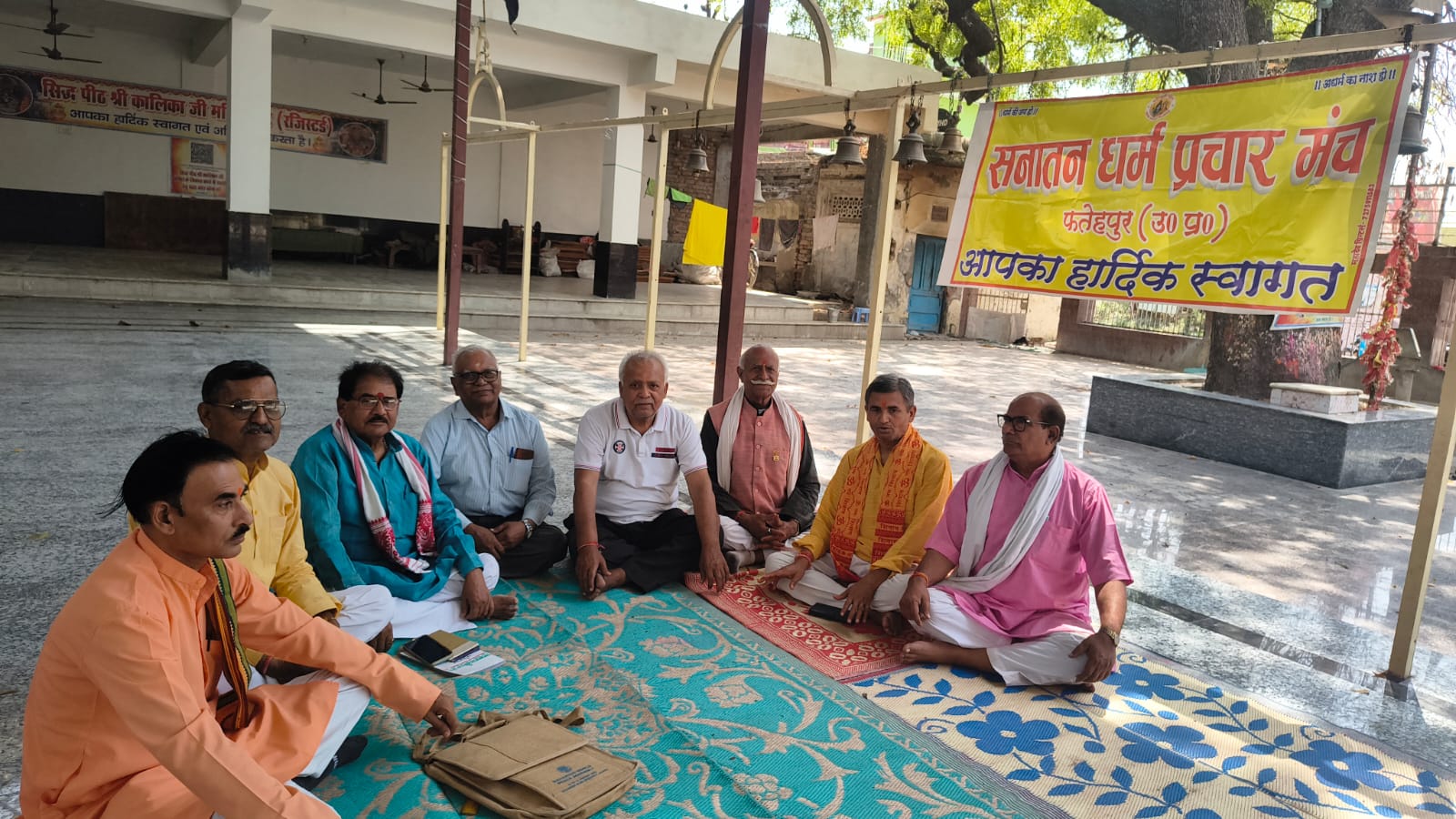 उत्तर प्रदेश फतेहपुर जिले में रविवार को सनातन धर्म प्रचार मंच फतेहपुर एवं सिद्ध पीठ कालिका मंदिर ट्रस्ट की एक आवश्यक बैठक मां कालिका मंदिर परिसर में आयोजित की गई। बैठक में सर्वसम्मति से निर्णय लिया गया कि 18 अप्रैल 2026 से 26 अप्रैल 2026 तक श्रीमद् देवीभागवत महापुराण की नौ दिवसीय भव्य एवं दिव्य कथा का आयोजन किया जाएगा। बैठक में बताया गया कि कार्यक्रम के मुख्य यजमान के रूप में केशवराम त्रिपाठी अपनी धर्मपत्नी के साथ उपस्थित रहेंगे। वहीं कथा व्यास के रूप में परम श्रद्धेय स्वामी पवन देव जी महाराज (केदार घाट, काशी) द्वारा कथा वाचन किया जाएगा। बैठक में बी.पी. पांडेय, प्रेम शंकर मिश्र (प्रवक्ता), प्रमोद द्विवेदी, राजकिशोर अग्निहोत्री, शोभा सिंह, धनंजय द्विवेदी और संतोष सिंह राजू सहित अन्य लोग उपस्थित रहे। कार्यक्रम की जानकारी सनातन धर्म प्रचार मंच फतेहपुर के मीडिया प्रभारी अजय सिंह चौहान द्वारा दी गई।