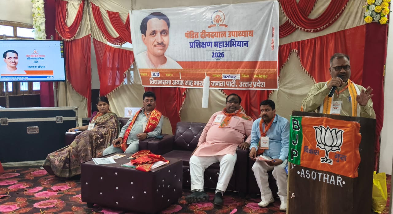 उत्तर प्रदेश फतेहपुर जिले में पंडित दीनदयाल उपाध्याय प्रशिक्षण महाअभियान के अंतर्गत मंगलवार को असोथर नगर के एक अतिथिगृह में भाजपा द्वारा मंडल स्तरीय प्रशिक्षण वर्ग का आयोजन किया गया। कार्यक्रम के उद्घाटन सत्र में रामकिशोर साहू मुख्य रूप से उपस्थित रहे। इस दौरान रामकिशोर साहू ने कार्यकर्ताओं को संबोधित करते हुए कहा कि भारतीय जनता पार्टी केवल एक राजनीतिक दल नहीं, बल्कि राष्ट्रवाद की भावना से प्रेरित संगठन है। उन्होंने कहा कि सेवा का संकल्प ही संगठन के लिए सर्वोपरि है और कार्यकर्ताओं के विचार व आचरण में राष्ट्रहित की झलक स्पष्ट दिखनी चाहिए। प्रशिक्षण वर्ग में भाजपा जिलाध्यक्ष अन्नू श्रीवास्तव ने संगठनात्मक संरचना को मजबूत करने के लिए आवश्यक बिंदुओं पर प्रकाश डाला। उन्होंने कहा कि पार्टी में कार्यकर्ताओं की प्रगति उनकी निष्ठा और कार्यशैली पर निर्भर करती है। कार्यक्रम के द्वितीय सत्र में कुलदीप भदौरिया ने वैचारिक अधिष्ठान विषय पर विस्तार से जानकारी दी, जबकि तृतीय सत्र में पंकज त्रिवेदी ने कार्यपद्धति विषय पर कार्यकर्ताओं को प्रशिक्षित किया। प्रशिक्षण महाअभियान के तहत मंगलवार को तीन सत्र संपन्न हुए, जबकि शेष चार सत्र बुधवार को आयोजित किए जाएंगे। इस अवसर पर बांदा जिलाध्यक्ष कल्लू राजपूत, अर्चना त्रिपाठी, पुष्पराज पटेल, नीरज सिंह, प्रवीण सिंह, राम महेश निषाद, नीरज सेंगर, शिवप्रताप सिंह, रामू द्विवेदी, सौरभ अग्निहोत्री, निर्मल सिंह चौहान, सर्वेश गुप्ता, विमल गुप्ता, सौरभ गुप्ता, साहिल शर्मा, विनोद भारती, चन्द्रभान पासवान सहित मंडल पदाधिकारी, शक्ति केंद्र संयोजक, मोर्चा अध्यक्ष, महामंत्री व वरिष्ठ कार्यकर्ता उपस्थित रहे।