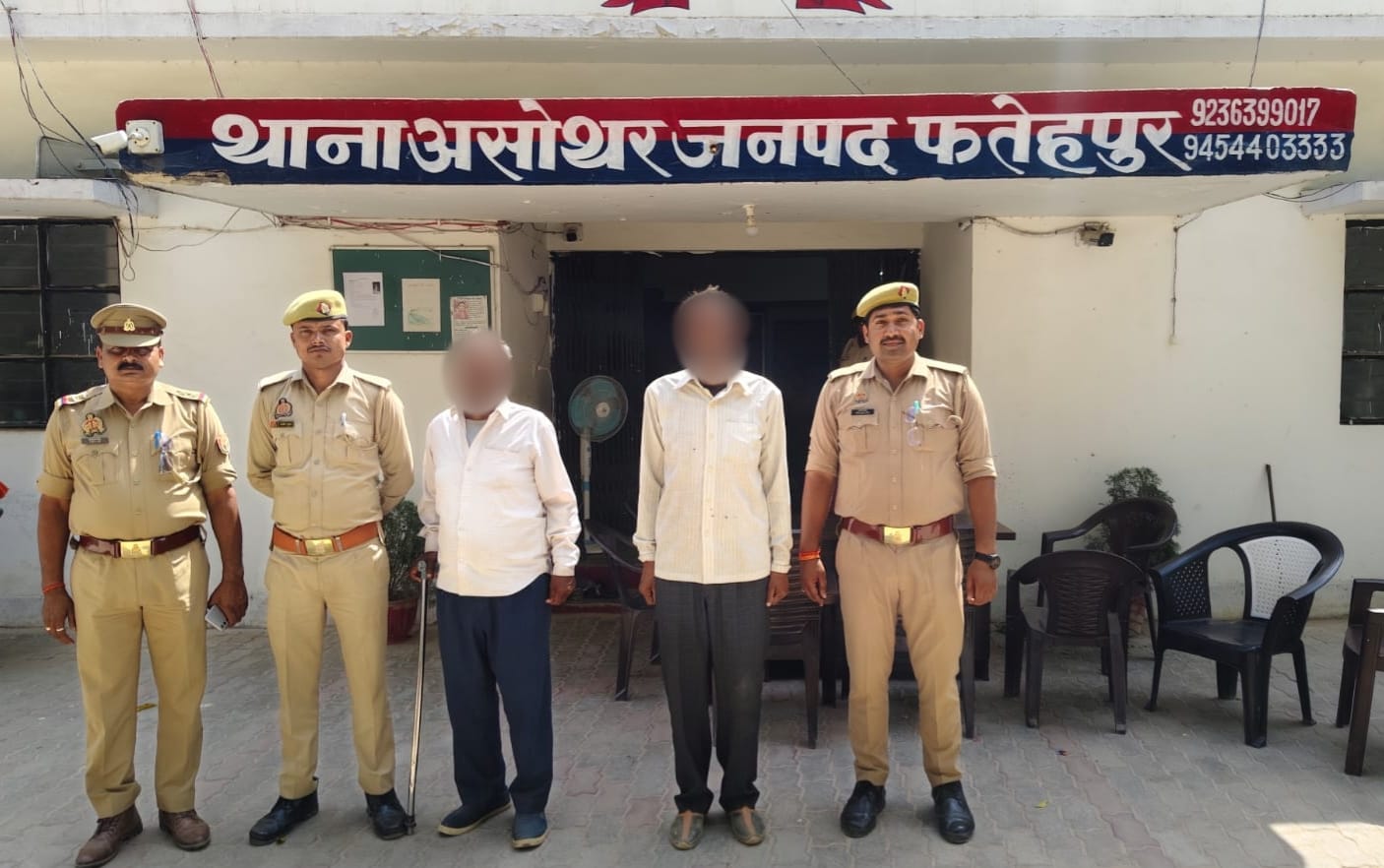 उत्तर प्रदेश फतेहपुर जिले की असोथर थाने की पुलिस द्वारा तथ्यों को छुपाकर जालसाजी कर कुर्कशुदा जमीन की रजिस्ट्री करने के अभियोग से संबंधित 02 वांछित आरोपियो को गिरफ्तार किया गया। पुलिस अधीक्षक अभिमन्यु मांगलिक के निर्देशन में वांछित/वारण्टियों की गिरफ्तारी व अपराध एवं अपराधियों के विरुद्ध चलाये जा रहे अभियान में असोथर थानां पुलिस द्वारा मु0अ0सं0 199/2025 धारा 318(4), 338, 336(3), 336(4), 340(1), 340(2), 352 BNS से से सम्बन्धित वांछित आरोपी थाना क्षेत्र के बड़े तिवारी का डेरा मजरे सरकण्डी गाँव निवासी बाबूलाल उर्फ बाबूराम तिवारी के 56 वर्षीय पुत्र राकेश कुमार तिवारी व बाबूलाल उर्फ बाबूराम तिवारी के 60 वर्षीय पुत्र अखिलेश कुमार तिवारी को गिरफ्तार कर न्यायालय भेजा गया।