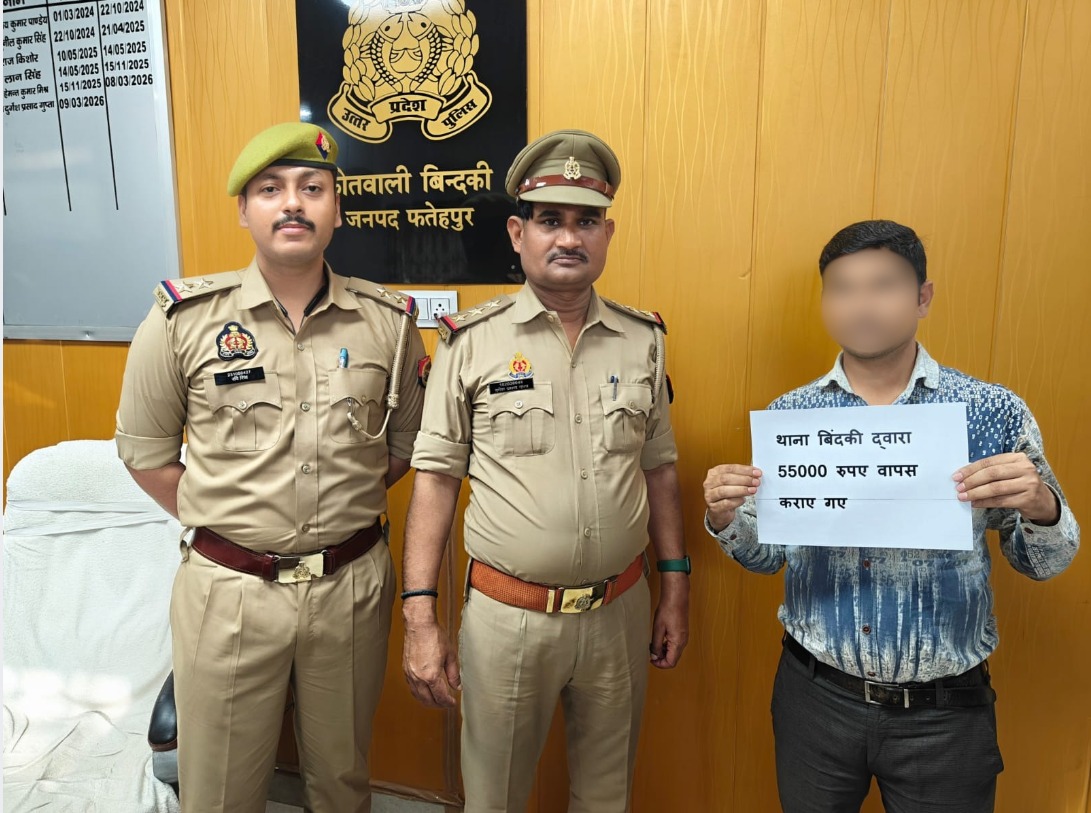 उत्तर प्रदेश फतेहपुर जिले में साइबर ठगी में गये 55,000/- रू0 की धनराशि पुनः पीड़ित के बैंक खाते में वापस कराई गई। साइबर अपराध एवं अपराधियों पर प्रभावी नियन्त्रण हेतु पुलिस अधीक्षक के निर्देशन व अपर पुलिस अधीक्षक व क्षेत्राधिकारी अपराध के निकट पर्यवेक्षण में एनसीआरपी पोर्टल एवं पीड़ितों द्वारा दिये गये शिकायती प्रार्थना पत्र की जाँच के उपरांत साइबर सेल थाना बिन्दकी व जन० साइबर सेल जनपद टीम द्वारा सार्थक प्रयास करते हुये न्यायालय के आदेश-निर्देश और सम्बन्धित बैंक से समन्वय स्थापित करते हुये आनलाइन ठगी के शिकार पीड़ित के 55,000/- रूपये की धनराशि उनके बैंक खाते में वापस कराया गया। शिकायतकर्ता बिन्दकी कोतवाली क्षेत्र निवासी विजय शंकर अग्निहोत्री के पुत्र अभिषेक अग्निहोत्री द्वारा जनपदीय उच्चाधिकारियों व साइबर सेल का आभार व्यक्त किया।