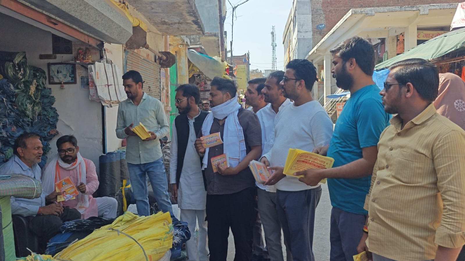 उत्तर प्रदेश फतेहपुर जिलें की बिंदकी कस्बे में 27 मार्च को आयोजित होने वाले श्री राम जन्मोत्सव के अवसर पर निकलने वाली भव्य शोभायात्रा को लेकर तैयारियां जोरों पर हैं। इसी क्रम में श्री राम भक्त सेवा समिति द्वारा नगर में व्यापक स्तर पर आमंत्रण पत्र वितरित किए गए। गुरुवार को समिति के पदाधिकारियों ने दोपहर 3 बजे से कस्बे के प्रमुख मार्गों और गलियों में भ्रमण कर दुकानदारों, घरों में रह रहे लोगों तथा आसपास के ग्रामीणों को आमंत्रण पत्र सौंपते हुए शोभायात्रा में अधिक से अधिक संख्या में शामिल होने की अपील की। आमंत्रण वितरण अभियान के तहत नेहरू इंटर कॉलेज रोड, फाटक बाजार, बजाजा गली, किराना गली, मेन बाजार, खजुहा चौराहा, मुगल रोड, ललौली चौराहा, तहसील रोड और गांधी चौराहा सहित विभिन्न क्षेत्रों में लोगों से संपर्क किया गया।