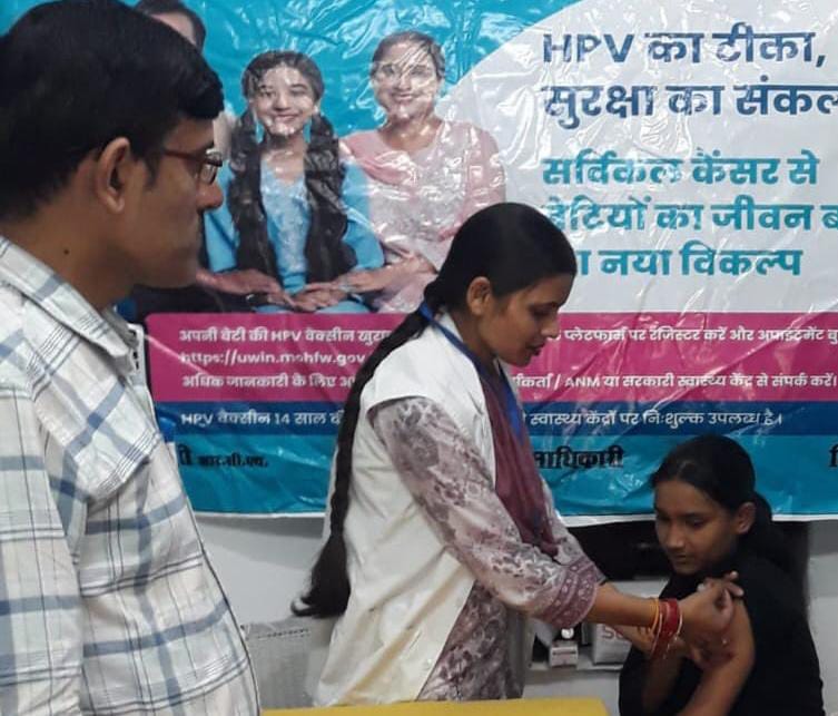 उत्तर प्रदेश फतेहपुर जिले के हथगाम सामुदायिक स्वास्थ्य केंद्र में चिकित्सा अधीक्षक डा. अमित कुमार चौरसिया की देखरेख में एचपीवी वैक्सीन लगाने के लिए श्रीमती सीमा देवी नर्स ने टीकाकरण शुरू किया। यह टीका सर्वाइकल कैंसर जैसी घातक बीमारी से बचाव के लिए लगाया जाता है। डा. अमित चौरसिया ने लोगों को जागरूक करते हुए बताया कि एचपीवी वैक्सीन लगाने के कार्य का शुभारंभ किया गया। यह टीकाकरण केवल उन बालिकाओं को लगाया जाना है। जिनकी उम्र 14 वर्ष पूर्ण हो गई हो और 15 वें वर्ष में प्रवेश किया हो। यह टीकाकरण सर्वाइकल कैंसर जैसी घातक बीमारी को रोकने के लिए लगाया जा रहा है।यह बालिकाओं के बाएं हाथ की ऊपरी बांह पर एक्स्ट्रा मस्कुलर 0.5 एम एल की केवल एक खुराक दी जाएगी।यह वैक्सीन मर्क एंड कंपनी द्वारा निर्मित है।सरकारी संस्थानों में पूर्ण रूप से यह वैक्सीन निःशुल्क लगाई जाएगी।इसके लिए बालिका को नाश्ता या भोजन करके आना होता है।एचपीवी टीकाकरण की भव्य शुरुआत सामुदायिक स्वास्थ्य केंद्र के चिकित्सा अधीक्षक डॉक्टर अमित कुमार चौरसिया की देखरेख में श्रीमती सीमा देवी एएनएम द्वारा की गई।इस अवसर पर हेल्थ एजुकेशन ऑफीसर प्रेम चंद्र, एआरओ गौरव भार्गव, बीपीएम राजन गुप्ता,बीसीपीएम धर्मेंद्र पटेल तथा स्टाफ के लोग मौजूद रहे।चिकित्सा अधीक्षक डॉक्टर चौरसिया ने बताया कि एचपीवी का टीका सुरक्षा का संकल्प है।सर्वाइकल कैंसर से बेटियों का जीवन बचाने का यह नया विकल्प है।