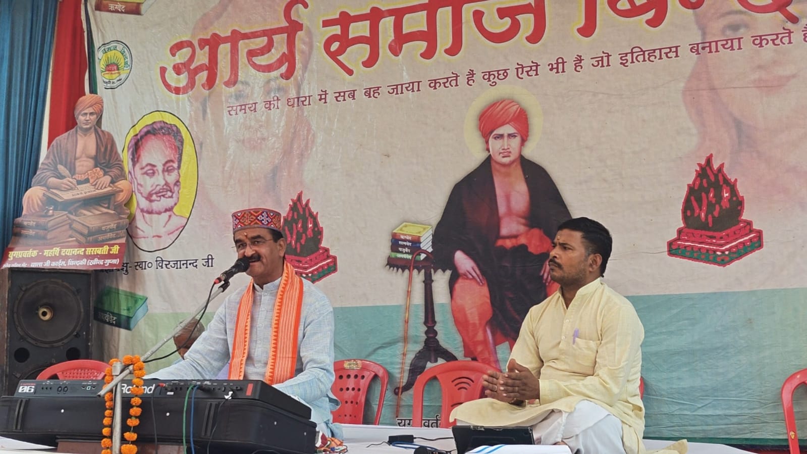 उत्तर प्रदेश फतेहपुर जिले की बिंदकी कस्बे में आर्य समाज के तीन दिवसीय वार्षिक उत्सव के दूसरे दिन भजन उपदेशक जगत वर्मा बोल इस दुनिया में जो आया है वह जाएगा जरूर जब तक जीवन है परोपकार कर ले पुण्य कमा ले और जीवन को सफल बना लें। जानकारी के अनुसार बिंदकी कस्बे के ललौली चौराहे के समीप दयानंद इंटर कॉलेज के सामने आर्य समाज मंदिर परिसर में आर्य समाज के तीन दिवसी वार्षिक उत्सव के दूसरे दिन शनिवार की सुबह 9 बजे मंत्र उच्चारण के साथ हवन पूजन किया गया। इसके बाद पंजाब से आए भजन उपदेशक जगत वर्मा द्वारा भजन के माध्यम से उपदेश दिए गए। इस मौके पर उन्होंने कहा की यहां पर जो आया है उसका जाना भी सुनिश्चित है इसलिए अधिक से अधिक परोपकार जीवन को सफल बनाने का काम करें। इस मौके पर आए हुए अन्य विद्वानों सुल्तानपुर से आए भजन उपदेशक आचार्य शुचिसद मुनी, हमीरपुर से आए भजन उपदेशक पंडित सेवक राम आर्य तथा फतेहपुर के उपदेश आचार्य भूदेव शास्त्री ने भी भजन उपदेश द्वारा अच्छे मार्ग में चलने की सीख दिया। इस मौके पर आर्य समाज के प्रधान श्रवण कुमार कोषाध्यक्ष कृष्ण कुमार मंत्री इंद्रधरलाल के अलावा वेद प्रकाश गुप्ता अरविंद गुप्ता उर्फ पप्पू यदुनंदन आर्य डॉक्टर महेश आर्य प्रिया दत्त पांडे जय ओमर जयदेव सिंह गप्पू गुप्ता वीरेंद्रगुप्ता आदि लोग मौजूद रहे।