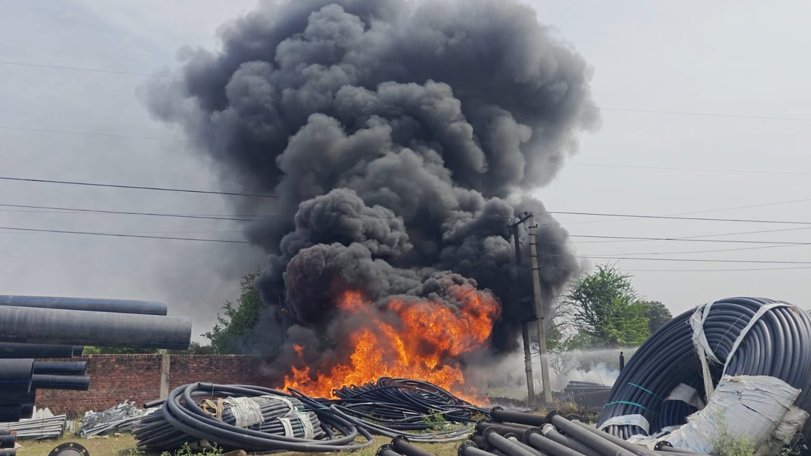 उत्तर प्रदेश फतेहपुर जिले की बिंदकी कोतवाली क्षेत्र में बिजली के शार्ट सर्किट से जल निगम के स्टोर में आग लग गई। लगभग आधे घंटे से अधिक तक हड़कंप मचा रहा मौके पर भारी भीड़ लग गई। खुश किस्मती रही कि पास में फायर स्टेशन होने के कारण तुरंत फायर ब्रिगेड पहुंची लगभग आधा घंटा के प्रयास के बाद आग को पूरी तरह से बुझा लिया गया। तब तक लाखों रुपए की संपत्ति जल गई आग की इसी घटना में एक किसान की लगभग एक बीघा गेहूं की फसल भी जल गई। कोतवाली बिंदकी क्षेत्र के अंतर्गत जनता गांव मोड़ के समीप शनिवार की सुबह लगभग 10:00 बजे हाई टेंशन लाइन के ट्रांसफार्मर में बिजली के शार्ट सर्किट से जल निगम के पावर मेक प्रोजेक्ट लिमिटेड के अंतर्गत राजधानी प्राइवेट लिमिटेड के स्टोर में आग लग गई। आग लगने से जल निगम के रखे प्लास्टिक के मोटे पाइप दूध कर जलने लगे। प्लास्टिक के पाइप आग का गोला बन गए। धुएं का गुबार कई किलोमीटर दूर तक दिखाई दे रहा था। भयंकर आग लगने पर दूर दराज के तमाम लोग मौके पर पहुंचने लगे। हड़कंप मच गया भारी भीड़ लगी रही। खुशकिस्मती रही कि फायर स्टेशन नजदीक ही था। जिसके तहत तुरंत फायर ब्रिगेड पहुंची। लगभग आधे घंटे के प्रयास के बाद आग को पूरी तरह से बुझा लिया गया। तब तक कई लाख रुपए के जल निगम के प्लास्टिक के पाइप जलकर खाक हो गए। हाई टेंशन लाइन के ट्रांसफार्मर में बिजली के शार्ट सर्किट से जनता गांव के विकास अवस्थी के एक बीघा गेहूं की फसल भी जल गई। खुशकिस्मती रही कि ग्रामीण भारी संख्या में एक्ट हो गए और तुरंत आग को बुझा लिया गया वरना आसपास सैकड़ो बीघा गेहूं की पकी फसल खड़ी हुई थी यदि आग विस्तार कर जाती तो किसानों की सैकड़ो बीघा फसल जल सकती थी। आग लगने की जानकारी होने पर लेखपाल उमेंद्र मौर्या तथा उनके साथ लेखपाल अजीत उमराव व लेखपाल प्रभाकर पटेल आदि मौके पर पहुंचे। गेहूं की जली फसल की जांच पड़ताल किया। सूचना मिलने पर पुलिस भी मौके पर पहुंची।