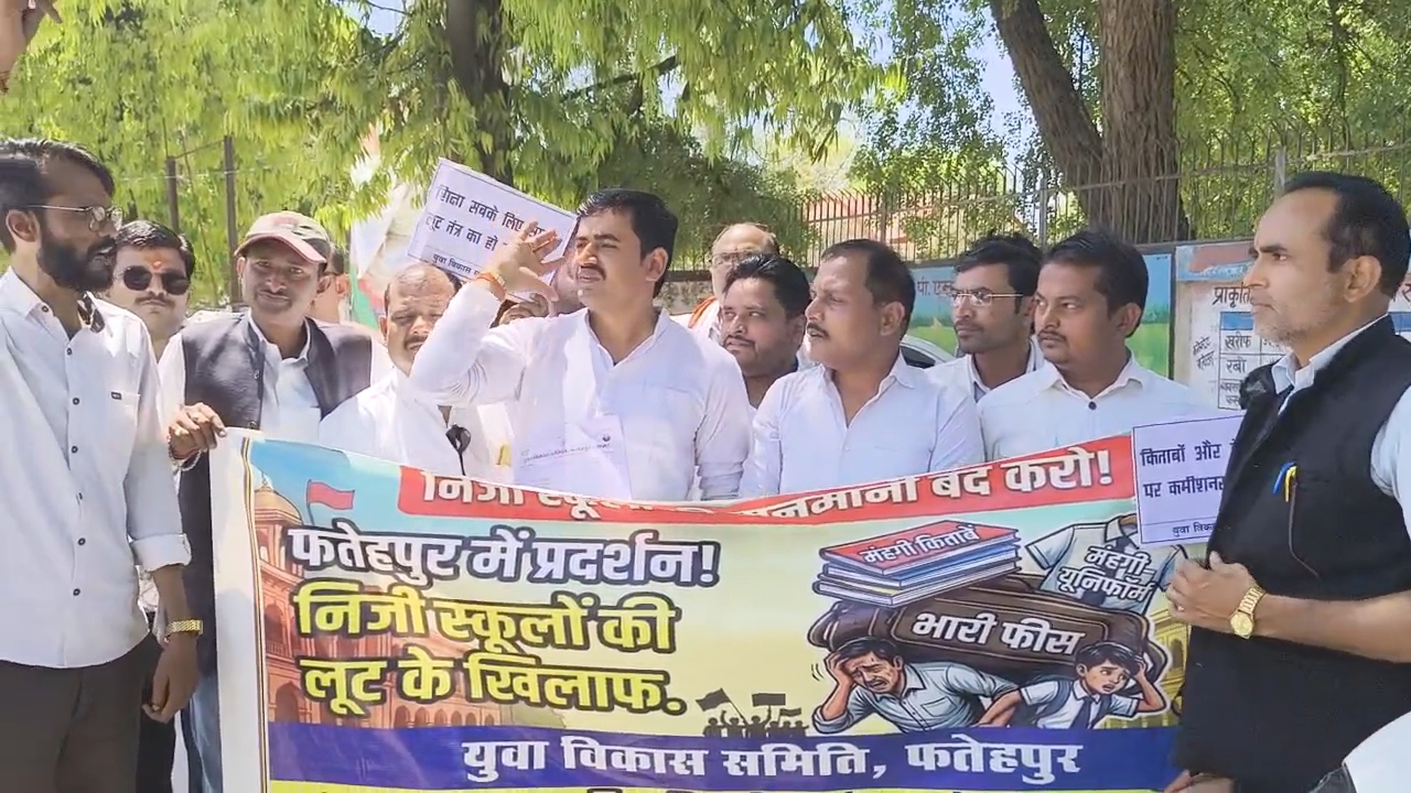 उत्तर प्रदेश फ़तेहपुर जिले के युवा विकास समिति के कार्यकर्ताओं ने प्राइवेट स्कूलों की मनमानी फीस वसूल के मुद्दों को जिला मुख्यालय पर प्रदर्शन किया। इस दौरान प्रदेश अध्यक्ष ज्ञानेंद्र मिश्रा के नेतृत्व में एसडीएम जी को ज्ञापन सौंपा। अध्यक्ष ज्ञानेंद्र मिश्रा ने कहा कि जिले के प्राइवेट स्कूल अभिभावकों से मनमानी फीस वसूल रहे हैं। लेट होने पर जुर्माना भी वसूला जाता है निजी विद्यालय प्रबंधन की ओर से एडमिशन, ट्यूशन, विकास सहित अन्य शुल्क में 15 से 25 प्रतिशत तक बढ़ोतरी की गई है। प्रवेश, बिल्डिग, खेल, पानी, बिजली, चिकित्सा, ट्यूशन फीस के नाम पर नामांकन के समय ही मनमाना वसूली होती है। री-एडमिशन के नाम पर भी पैसा लिया जा रहा है। बच्चों का प्रवेश शुल्क, कापी, किताब, ड्रेस खरीदने में अभिभावक त्राहिमाम कर रहे हैं। यहां तक कि जेनरेटर शुल्क के नाम पर ली जाने वाली राशि में भी बढ़ोतरी की गई है। वहीं जिला प्रशासन भी इस पर मौन है। जिससे नगर के दर्जनों नामी निजी विद्यालयों पर न तो किसी तरह का सरकारी अंकुश है और न ही किसी तरह का दबाव ही। परिणाम हैं कि निजी विद्यालय के संचालक अपनी मर्जी फीस तय करते हैं और अभिभावकों से वसूलते हैं। हर निजी विद्यालय का अपना-अपना फीस है। इस पर किसी तरह का नियंत्रण नहीं दिखता है। जहां तक फीस की बात है तो हर स्कूल में अपने-अपने तरीके से फीस निर्धारित है। कुछ विद्यालयों में केजी से कक्षा आठ तक के लिए 2500 से 3000 रुपये महीना निर्धारित है। तो 8 से ऊपर कक्षा के लिए 3000 से 5000 रुपये तक। इसके अलावा कम्प्यूटर, परिवहन, बिजली आदि के नाम पर भी राशि वसूली जाती है। बिजली के नाम पर 1500 से 2000 तक, आईटी चार्जेस 600, मेंटेनेंस के नाम पर 5000 रुपये वसूल किए जाते हैं। जल्द जिला प्रशासन ऐसी नमी विद्यालयो पर कार्यवाही नही की तो संगठन आंदोलन के लिए तैयार है बड़े स्तर पर जिला के सभी अभियान को कोई इकट्ठा कर आंदोलन किया जाएगा इस मौके पर संगठन प्रमुख संजय दत्त द्विवेदी ,आफताब ,जिला अध्यक्ष कंचन मिश्रा, विकास श्रीवास्तव , आनंद अवस्थी , ऋषि बाजपेई, दीप कुमार , दिनेश , संदीप मिश्रा, गणेश तिवारी , आदि लोग उपस्थित रहे !