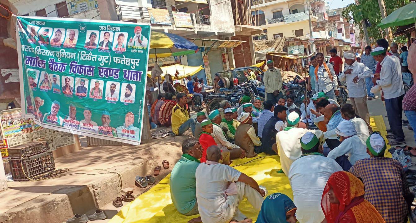 उत्तर प्रदेश फतेहपुर जिले के धाता स्वतंत्र भारत के पहले निर्दलीय विधायक दादा दीप नारायण सिंह चौराहे के सौन्दर्यीकरण, क्षेत्र की खस्ताहाल विभिन्न सड़कों तथा बंदरों से होने वाले किसानों के नुकसान को लेकर सोमवार को भाकियू के ब्लॉक अध्यक्ष अशोक कुमार सिंह की अगुवाई में लगभग एक दर्जन मांगों को लेकर सैकड़ों किसानों ने धरना दिया। उन्होंने कहा कि सरकार इस तरह से किसानों के हितों की अनदेखी नहीं कर सकेगी। यदि 7अप्रैल बारह बजे तक कोई जिम्मेदार प्रशिसनिक अधिकारी नहीं आता तो चक्का जाम किया जाएगा। जिसकी जिम्मेदारी शासन प्रशासन की होगी। भारतीय किसान यूनियन के इस धरने में प्रमुख रूप से परसिद्धपुर मार्ग का डामरीकरण, सोनारी रोड से अजरौली ग्राम सभा तक सड़क को गड्ढा मुक्त किए जाने, धाता से गोड़वापर, रामपुरवा, ऐमापुर, ग्राम्य दर्शन इंटर कॉलेज तक, अहमदपुर कुसुंबा से मखौआ, पर गांव तक डामरीकरण कराए जाने, भीमपुर सहित सभी भु मार्गों का डामरीकरण एवं गड्ढा मुक्त किया जाय। सभासद *सुनील कुमार* के द्वारा आवासों में धांधली करवाना व पात्र लोगों को आवास के लाभ से वंचित करना,गाटा संख्या 97व98 तालाबी नंबर में अवैध मकान बने होने की शिकायत नरेश पासवान के द्वारा 2 वर्षों से किए जाने के बाद अब तक कोई निदान न होने को लेकर किसान यूनियन आर पार की लड़ाई लड़ेगी। धाता में वार्ड नंबर दो में गाटा संख्या 2061 ग्राम पंचायत की जमीन पर अवैध कब्जा हटाने के साथ दीप नारायण चौराहे से सूर्य कुंड तालाब तक अतिक्रमण हटाया जाना किसान यूनियन की मुख्य मांगों को लेकर किसान यूनियन आर-पार की लड़ाई को देखते हुए धरने का आयोजन किया गया है। भाकियू अध्यक्ष अशोक कुमार सिंह ने कहा कि जब-तक कोई सक्षम अधिकारी द्वारा मौके पर पहुंच कर सभी कार्यों को ससमय पूरा करने का आश्वासन नहीं देता तब तक धरना जारी रहेगा।धाता कस्बे का गेहूं क्रय केंद्र हरदासपुर थोन किए जाने से क्षेत्र के किसानों को गेहूं विक्रय में समस्याओं का सामना करना पड़ रहा है अतः गेहूं क्रय केंद्र धाता, लिहई, डेंडासई किया जाय। किसने की समस्याओं को लेकर भारतीय किसान यूनियन हमेशा से संवेदन शील रहा है उपरोक्त सभी मांगों पर शीघ्र ही विचार न किया गया तो भाकियू द्वारा व्यापक आंदोलन धरना प्रदर्शन किया जाएगा जिसकी जिम्मेदारी शासन प्रशासन की होगी। इस धरने में ब्लॉक अध्यक्ष अशोक कुमार सिंह, जि सं मंत्री धनंजय सिंह, जिला सचिव के पी सिंह, तहसील उपाध्यक्ष धीरेंद्र सिंह, युवा ब्लॉक अध्यक्ष रबीकरन सिंह, युवा जिला संयोजक महेश फौजी, गंगा सिंह, भैया लाल मिस्त्री, राजू सिंह, नरेश मौर्य, बुद्ध राज, कामता, कुलदीप सिंह, शीतल, गिरजा शंकर शिक्षक प्रकोष्ठ, नथन सिंह, राजू टेकमान, रूबी देवी, गीता देवी एवं सुनीता सहि