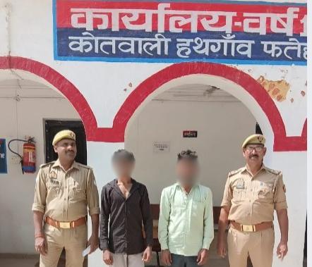 उत्तर प्रदेश फ़तेहपुर जिले के हथगांव थाने की पुलिस द्वारा दुष्कर्म के मामले में आपत्तिजनक वीडियो बनाकर वायरल करने वाले दो आरोपियो को गिरफ्तार किया गया। पुलिस अधीक्षक अभिमन्यु मांगलिक के निर्देशन में वांछित/वारण्टियों की गिरफ्तारी व अपराध एवं अपराधियों के विरुद्ध चलाये जा रहे अभियान में हथगांव पुलिस द्वारा मु0अ0सं0 154/2025 धारा-65(1)/61(2) बीएनएस व 66 E आईटी एक्ट व 16/17 पाक्सो एक्ट से सम्बन्धित प्रकाश में आये आरोपी थानां क्षेत्र के हरी का पुरवा मजरे पैगम्बरपुर रिकौहा गाँव निवासी संतराम कोरी के 29 वर्षीय पुत्र कुलदीप कोरी व गाँव निवासी बुद्धा कोरी के 19 वर्षीय पुत्र कमल कोरी को गिरफ्तार कर न्यायालय भेजा गया।
