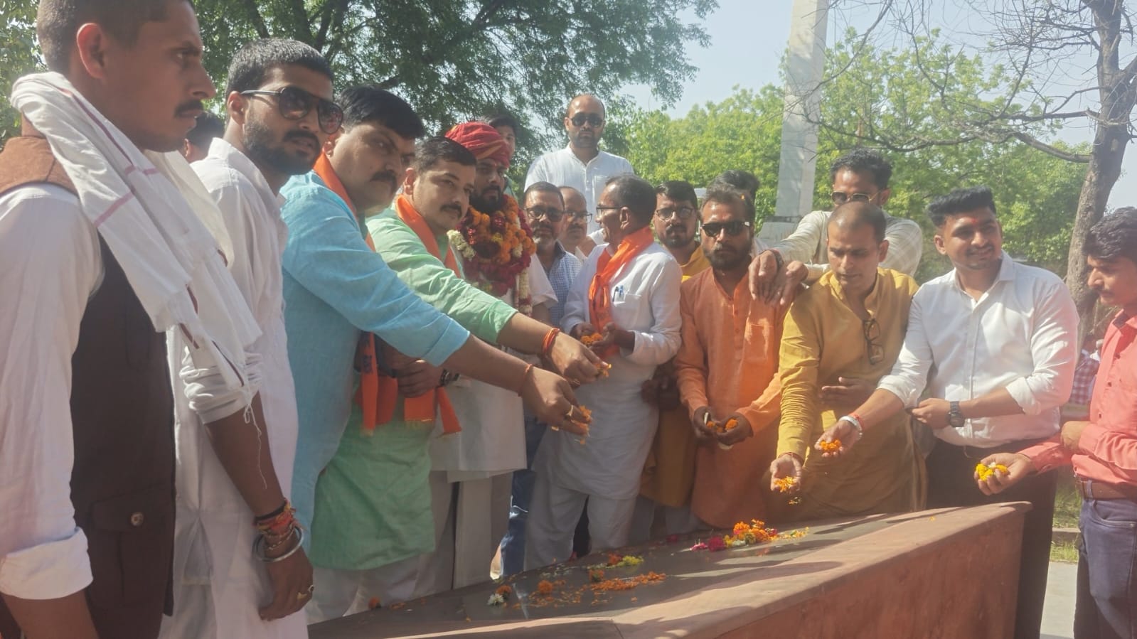 उत्तर प्रदेश फ़तेहपुर जिले की बिंदकी कोतवाली क्षेत्र में महाराणा सांगा की जयंती के मौके पर अखिल भारतीय क्षत्रिय महासभा तथा हिंदू समाज द्वारा विशाल गौरव यात्रा निकाली गई। यह गौरव यात्रा विभिन्न स्थानों से होते हुए बावन इमली शहीद स्मारक पहुंची जहां पर अमर शहीदों को नमन किया गया। स्मारक परिसर में संकल्प दिवस समारोह का आयोजन किया गया। जिसे महाराणा सांगा को महायुद्ध बताते हुए उनके व्यक्तित्व तथा कृतित्व पर चर्चा की गई। जानकारी के अनुसार बिंदकी खजुहा रोड स्थित बावन इमली शहीद स्मारक में रविवार को दिन मे करीब 3:30 बजे महाराणा सांगा की जयंती के मौके पर अखिल भारतीय क्षत्रिय महासभा तथा हिंदू समाज द्वारा देश को आजाद कराने वाले अमर शहीद जोधा सिंह अटैया सहित बावन अमर शहीदों को श्रद्धा सुमन अर्पित किए गए। महाराणा सांगा की जयंती के मौके पर इसके पहले विशाल गौरव यात्रा निकाली गई। यह यात्रा कार्यक्रम के आयोजन जन सेवक धर्मेंद्र सिंह के नेतृत्व में जनपद के विभिन्न स्थानों से होते हुए बिंदकी क्षेत्र के कैंची मोड होते हुए कुंवरपुर होकर बिंदकी कस्बा पहुंची। बिंदकी कस्बे से यह गौरव यात्रा बावन इमली शहीद स्मारक पहुंची। जहां पर अमर शहीदों को नमन किया गया। अमर शहीदों को नमन करने के बाद बावन इमली शहीद स्मारक परिसर में महाराणा सांगा संकल्प दिवस समारोह का आयोजन किया गया जिसमें मौजूद लोगों ने महाराणा सांगा को महान योद्धा बताते हुए उनके व्यक्तित्व तथा कृतित्व पर चर्चा किया। इस मौके पर कार्यक्रम के आयोजक धर्मेंद्र सिंह जन सेवक ने कहा कि जब भी भारतीय इतिहास में शौर्य स्वाभिमान और अदम साहस की चर्चा होती है तो महाराणा सांगा का नाम स्वर्ण अक्षरों में दर्ज मिलता है। मेवाड़ के इस महान शासक ने न केवल राजपूताने की एकता को मजबूत किया बल्कि विदेशी आक्रमण कारियो के सामने भारतीय अस्मिता की रक्षा के लिए अपना सर्वस्व से निछावर कर दिया। इस मौके पर अन्य वक्ताओं ने कहा कि महाराणा सांगा की जयंती के मौके पर उनका जीवन हमें यह सिखाता है कि विपरीत परिस्थितियों में भी साहस और स्वाभिमान का मार्ग नहीं छोड़ना चाहिए। उन्होंने मालवा गुजरात और दिल्ली सल्तनत के क्षेत्र पर विजय प्राप्त की। उनका उद्देश्य केवल क्षेत्र का विस्तार ही नहीं बल्कि भारतीय संस्कृति और परंपराओं की रक्षा भी करना था। महाराणा सांगा ने विभिन्न राजपूत राजाओं को एक मंच पर लाकर एक मजबूत संघ का निर्माण किया था। उनको हमेशा हमेशा याद किया जाएगा। इस मौके पर शुभम ठाकरे नागेश सिंह जेपी सिंह सुशील सिंह विजय सिंह चौहान आशुतोष अवस्थी अनिल शुक्ला युवराज सिंह अनिल सिंह पीयूष सिंह बीनू पांडे राघवेंद्र सिंह राहुल सिंह आलोक सिंह चौहान हर्षित सिंह परिहार अभिम
