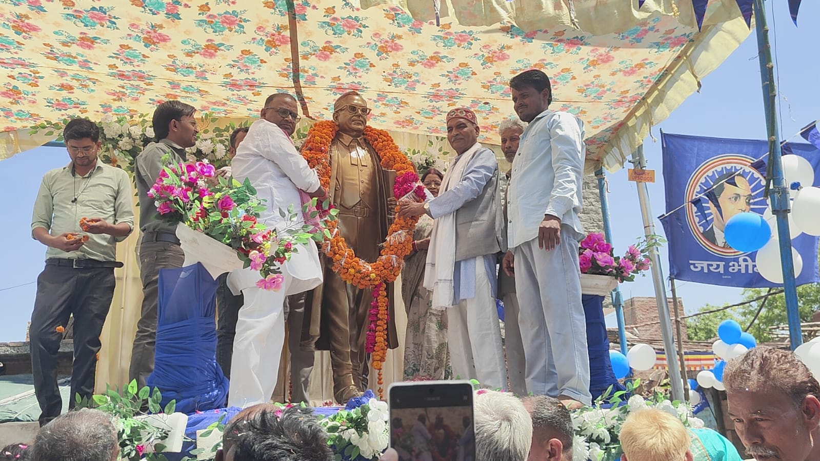 उत्तर प्रदेश फ़तेहपुर जिले की बिंदकी कोतवाली क्षेत्र में भारत रत्न संविधान निर्माता बाबासाहेब डॉक्टर भीमराव अंबेडकर की प्रतिमा का अनावरण किया गया इस मौके पर मौजूद लोगों ने कहा कि बाबा साहेब अंबेडकर सामाजिक आर्थिक तथा राजनीतिक परिवर्तन के महान योद्धा थे उन्हें हमेशा याद रखा जाएगा। जानकारी के अनुसार बिंदकी कस्बे के निकट स्थित मुरादपुर गांव में सोमवार को दिन में करीब 11:00 बजे भारत रत्न संविधान निर्माता बाबा साहेब डॉक्टर भीमराव अंबेडकर की प्रतिमा का अनावरण किया गया। इस मौके पर समाजवादी पार्टी के पूर्व जिला अध्यक्ष रामेश्वर दयाल दयाल ने कहा कि बाबासाहेब डॉक्टर भीमराव अंबेडकर सामाजिक आर्थिक तथा राजनीतिक परिवर्तन के महान योद्धा थे उन्हें कभी बुलाया नहीं जा सकता है उन्हें हमेशा हमेशा याद रखा जाएगा। इस मौके पर भीम आर्मी के बिंदकी नगर अध्यक्ष नरेंद्र टाइगर ने कहा कि संविधान निर्माता बाबा साहेब डॉक्टर भीमराव अंबेडकर सामाजिक न्याय के पुरोधा थे और भारतीय समाज में समानता लाने के लिए उनका अतुलिनीय योगदान हमेशा याद रहेगा। इस मौके पर समाजसेवी पप्पू सिंह राठौर ने कहा कि बाबासाहेब अंबेडकर ने दलितों पिछड़ों तथा गरीबों के हितों के लिए आजीवन काम किया था। उनके दिए गए संविधान से आज पूरा देश और समाज चल रहा है। इस मौके पर रवि गौतम विकास विशाल पंकज गौतम सुशील मोहित बबलू नरेंद्र सानू गोरे सोनकर शिवकुमार जितेन सोनकर विष्णु कुमार सुनील गौतम विपिन कुमार बाबूराम छेदीलाल हरी बाबू विजय बहादुर शंकर रामगुलाम आदिलोक मौजूद रहे।