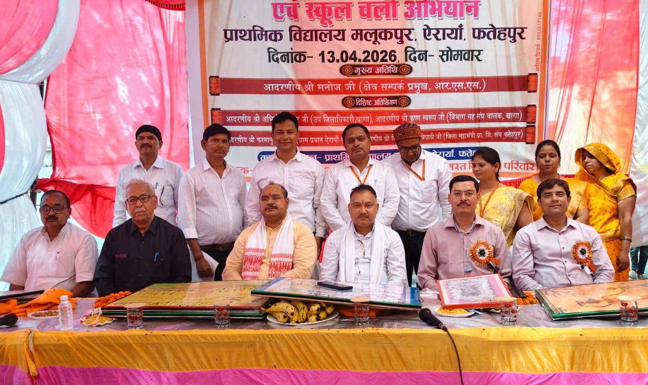उत्तर प्रदेश फतेहपुर जिले में सोमवार को ऐरायां विकास खंड क्षेत्र के अन्तर्गत मलूकपुर प्राथमिक विद्यालय में वार्षिकोत्सव, स्कूल चलो अभियान एवं प्रतिभा अलंकरण समारोह का आयोजन किया गया। कार्यक्रम के मुख्य अतिथि राष्ट्रीय स्वयंसेवक संघ के क्षेत्र संपर्क एवं विमर्श प्रमुख मनोज उपस्थित रहे।कार्यक्रम का संचालन प्रधानाध्यापक डॉ अम्बिका प्रसाद मिश्र ने किया।कार्यक्रम का शुभारंभ मुख्य अतिथि मनोज एवं अन्य अतिथियों द्वारा माँ सरस्वती की प्रतिमा पर दीप प्रज्ज्वलन एवं माल्यार्पण करके किया गया। मुख्य अतिथि ने ग्रामीण क्षेत्र के प्राथमिक विद्यालय में इस प्रकार के वार्षिकोत्सव की सराहना करते हुए कहा कि विद्यालय संस्कारों की पाठशाला है जहां मलूकपुर जैसे विद्यालय बच्चों को संस्कार देने का कार्य करते हैं। उन्होंने कहा कि हमें बच्चों में अच्छे संस्कार व संस्कृति का बीजारोपण करना चाहिए जिससे वह एक अच्छा नागरिक बन सकें और मां भारती की सेवा कर सकें। अन्य वक्ताओं ने भी अपने उद्बोधन में विद्यालय स्टॉफ एवं बच्चों की प्रशंसा की। कार्यक्रम में वार्षिक परीक्षा में प्रथम, द्वितीय व तृतीय स्थान पाने वाले बच्चों को ट्रॉफी देकर पुरस्कृत किया गया। विद्यालय में सबसे अधिक अंक पाने वाली छात्रा जयशिका मौर्य को टॉपर ऑफ द स्कूल पुरस्कार देकर सम्मानित किया गया। इसके साथ ही साथ ऐसे बच्चे जिनकी वार्षिक उपस्थिति 100% थी उनको और उनके माता-पिता को भी ट्रॉफी और उपहार देकर सम्मानित किया गया। विद्यालय में गठित बाल संसद के अंतर्गत अच्छा कार्य करने वाले समितियों के सदस्यों को मेडल देकर सम्मानित किया गया। कक्षा एक के नव प्रवेशी बच्चों को शासन द्वारा उपलब्ध कराई गई पुस्तकों को देकर स्कूल चलो अभियान का शुभारंभ किया गया। विद्यालय के बच्चों द्वारा विभिन्न सांस्कृतिक कार्यक्रमों की प्रस्तुति की गई। विद्यालय के वरिष्ठ शिक्षक आनन्द कुमार मिश्र द्वारा आये हुए अतिथियों का आभार व्यक्त किया गया। अंत में वंदेमातरम गायन के साथ कार्यक्रम का समापन किया गया। विशिष्ट अतिथियों में राष्ट्रीय स्वयं संघ के प्रांत संपर्क प्रमुख घनश्याम, संघ के विभाग सह संघचालक कृष्ण स्वरूप, प्राथमिक शिक्षक संघ के जिला महामंत्री विजय त्रिपाठी, राज्य संदर्भ दाता समूह के सदस्य राधेश्याम दीक्षित, जयचंद्र पाण्डेय, संघ के जिला कार्यवाह श्रीराम अभिलाष, जिला बौद्धिक प्रमुख शिवेश त्रिपाठी, जिला संपर्क प्रमुख श्याम प्रकाश शर्मा, नगर कार्यवाह उमेश, आदित्य एकेडमिक रिसोर्स पर्सन आकाश सिंह, समर बहादुर सिंह, राम प्रसाद पाल, अजय सिंह, अशोक सिंह, लाल चंद्र, चंद्र प्रकाश, विद्यालय स्टॉफ आनन्द कुमार मिश्र, सुमेन्द्र पाल मौर्य, संतोष कुमार प