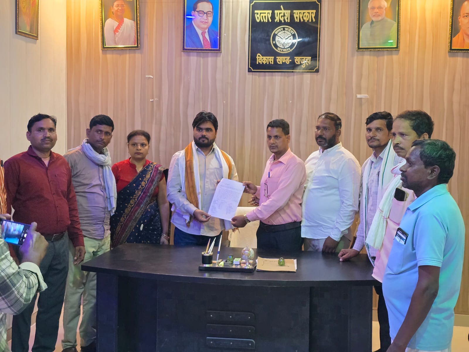 उत्तर प्रदेश फ़तेहपुर जिले के बिंदकी कस्बे में मानदेय ना मिलने से नाराज ग्राम रोजगार सेवक वेलफेयर एसोसिएशन उत्तर प्रदेश के वहां पर मनरेगा योजना के अंतर्गत कार्यरत है ग्राम रोजगार सेवक एपीओ तकनीकी सहायक तथा कंप्यूटर ऑपरेटर ने खंड विकास अधिकारी को ज्ञापन सोपा कहा गया कि मांग पूरी नहीं हुई तो 16 अप्रैल से लेकर 25 अप्रैल तक सांकेतिक कलम बंद हड़ताल पर रहेंगे और फिर भी मांग पूरी नहीं हुई तो आगे की रणनीति के आधार पर आंदोलन चलाएंगे। जानकारी केअनुसार खजुआ कस्बे के ब्लॉक मुख्यालय में गुरुवार की दोपहर करीब 12:00 बजे ग्राम रोजगार सेवक वेलफेयर एसोसिएशन उत्तर प्रदेश के आवाहन मनरेगा योजना के अंतर्गत विकासखंड खजुहा जनपद फतेहपुर में कार्यरत ग्राम रोजगार सेवक, एपीओ, तकनीकी सहायक तथा कंप्यूटर ऑपरेटर ने खंड विकास अधिकारी खजुआ को एक ज्ञापन सौपा। जिसमें कहा गया कि हम सभी लोगों का मानदेय एवं ईपीएफ लंबित है इसलिए 16 अप्रैल से लेकर 25 अप्रैल तक सांकेतिक कलम बंद हड़ताल पर रहेंगे। ज्ञापन में यह भी कहा गया कि यदि हमारी मांगों पर विचार नहीं किया गया तो 26 अप्रैल के बाद प्रत्येक ब्लॉक में पोस्टकार्ड के माध्यम से मुख्यमंत्री को संबोधित पत्रक भेजेंगे तथा 1 में 2026 को मुख्यमंत्री को संबोधित एक ज्ञापन जिलाधिकारी को सौंपेंगे। ज्ञापन में कहा गया कि किसी भी कर्मचारी के ऊपर कार्य करने हेतु किसी प्रकार का दबाव न बनाया जाए। इस मौके पर ग्राम रोजगार सेवक वेलफेयर एसोसिएशन ब्लाक खजुहा के अध्यक्ष अकरम खान के अलावा राजीव वर्मा जयशंकर वर्मा सुनील कुमार विकल सिंह शिव सिंह विनोद कुलदीप ब्रजकिशोर ज्योति तिवारी महेंद्र कुमार राम नरेश सियाराम आशीष सिंह अंशुमान सिंह जसवंत सिंह संजय आदि मौजूद रहे।