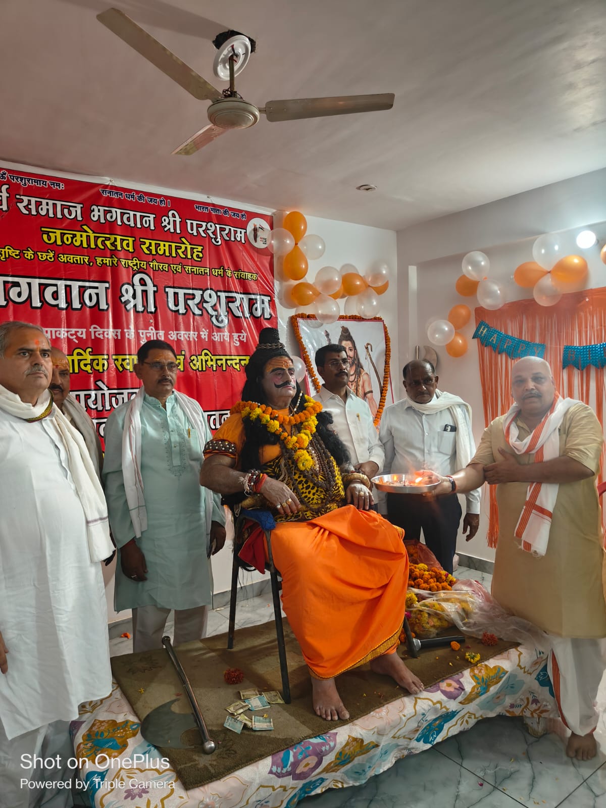 उत्तर प्रदेश फतेहपुर जिले की।सदर कोतवाली क्षेत्र में आज अखिल भारत हिंदू महासभा द्वारा आयोजित रेणुकानंदन भार्गव श्री परशुराम जी का जन्मोत्सव धूमधाम से शोभायात्रा निकालकर सर्व समाज द्वारा द्विवेदी टावर आईटीआई रोड फतेहपुर में पूर्व मंत्री राधेश्याम गुप्ता की अध्यक्षता में प्रातः 10:00 बजे से प्रारंभ होकर दोपहर 2:00 बजे तक चलता रहा। सर्वप्रथम भगवान श्री परशुराम के तैलीय चित्र पर माल्यार्पण पूजा आरती करके परशुराम स्वरूप श्री रामबाबू द्विवेदी जी मयंक का वैदिक मंत्र उच्चरणों से आरती करके पूजा स्वागत अभिनंदन किया गया। कार्यक्रम में सर्वप्रथम 5 वर्ष की आर्य अग्रवाल द्वारा संस्कृत भाषा के गीता हुआ भागवत के लगभग 101 श्लोक पढ़े गए। अपने उद्बोधन में विख्यात परशुराम अभिनेता श्री रामबाबू द्विवेदी मयंक जी ने सनातन व परशुराम की व्याख्या करते हुए कहा कि हमने सर्व समाज का सदैव कल्याण करते हुए दक्षिण दिशा में सहयाद्रि पर्वत पर रहने वाले कोल भील आदिवासी जनजाति, अनु, दुई,तरसतू,सरयाति आदि जातियों को तत्कालीन राजाओं से मुक्त कराकर सुशबय नागरिक बनाया, असम प्रांत को समतल करते हुए हिमालय के पूर्व शिखा को अपने फरसे से काट काट करके ब्रह्मपुत्र नमक नदी को निर्मित करके लोगों को जल के संकट से मुक्त कराया।