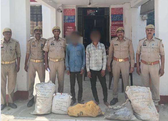 उत्तर प्रदेश फतेहपुर जिलें की चांदपुर पुलिस द्वारा चोरी के अभियोग से संबंधित 02 वांछित आरोपियो को गिरफ्तार उनके कब्जे से चोरी का माल बरामद किया गया। पुलिस अधीक्षक अभिमन्यु मांगलिक के निर्देशन में वांछित/वारण्टियों की गिरफ्तारी व अपराध एवं अपराधियों के विरुद्ध चलाये जा रहे अभियान में थाना चांदपुर पुलिस द्वारा मु0अ0सं0 55/2026 धारा 303 (2)/317 (2) बीएनएस से सम्बन्धित वांछित आरोपी थानां क्षेत्र के पूरे राहत अली गौरीपुर गाँव निवासी स्व0 रामलाल के पुत्र राकेश उर्फ दनकू और राकेश के पुत्र सूरज को 1. 15 लीटर ट्रान्सफार्मर का तेल।, 2. 7 कि0ग्रा0 एल्युमिनियम वायर।, 3. 8 कि0ग्रा0 एल0टी0 वायर एल्युमिनियम।, 4. 50 कि0ग्रा0 कोर पत्ती लोहा।, 5. चैनल – 4 अदद लम्बाई 18 इन्च के साथ गिरफ्तार किया गया। गिरफ्तार आरोपियो को न्यायालय भेजा गया।