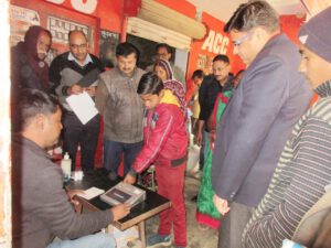 और पूछा कि कोटेदार द्वारा प्रति यूनिट पर कोई कटौती तो नही की जाती है जिस पर कार्डधारकों ने बताया कि कोई कटौती नही की जाती है। जिलाधिकारी ने दुकान के अन्दर रखे हुये चावल की गुणवत्ता को देखा जो सही पाया गया। उन्होने इस दौरान कार्डधारकों को इलेक्ट्रानिक मशीन से दिये जा रहे खाद्यान्न के तौल तथा ई-पास मशीन पर कार्डधारकों के अंगूठा लगाने की प्रक्रिया को देखा।